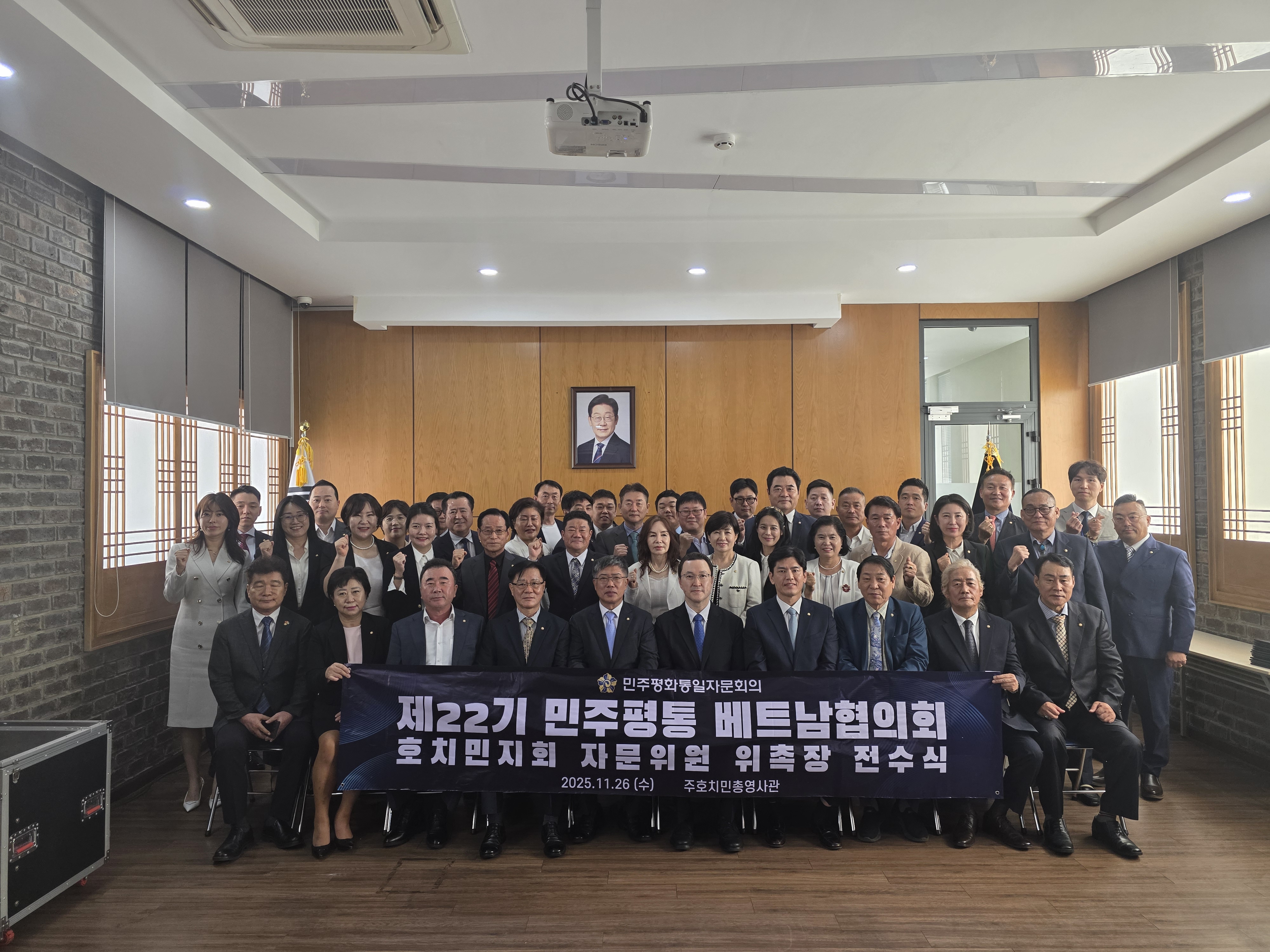 민주평통 베트남협의회 호치민지회(회장 황인호)는 2025년 11월 26일 15:00부터 베트남 호치민시 주호치민총영사관에서 개최된 22기 민주평통 자문위원 위촉장 전수식에 참석하였다.