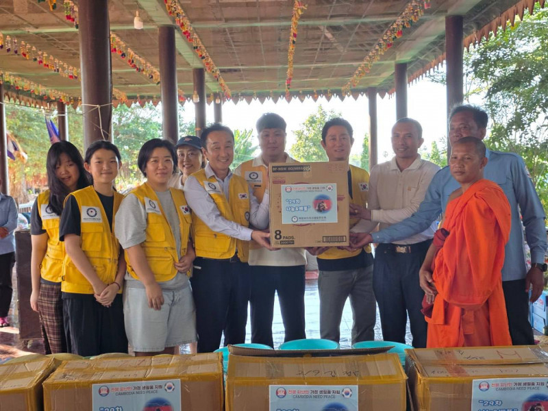 시엠립 소재 ‘왓 롬 브롤렁(Wat Lorm Brolerng)’ 사원에서 진행된 이번 행사는 전쟁의 포화를 피해 피난길에 오른 50세대, 약 200여 명의 주민을 대상으로 이뤄졌습니다. 이번 활동은 민주평통이 추구하는 평화 정신을 바탕으로, 예기치 못한 비극을 겪고 있는 현지 이웃들에게 실질적인 도움을 주기 위해 마련되었습니다.