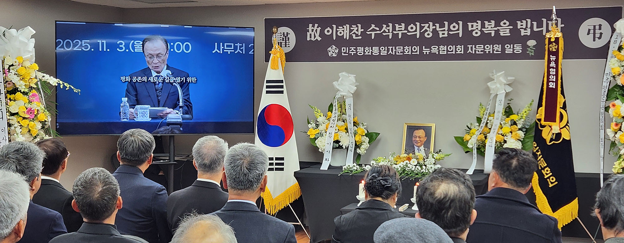 민주평화통일자문회의 뉴욕협의회(회장 이시화)는 27일 뉴욕협의회 회의실에서 고(故) 이해찬 민주평화통일자문회의 수석부의장 추모행사를 개최하고, 대한민국 민주주의와 한반도 평화·통일을 위해 평생을 헌신한 고인의 뜻을 기렸다.