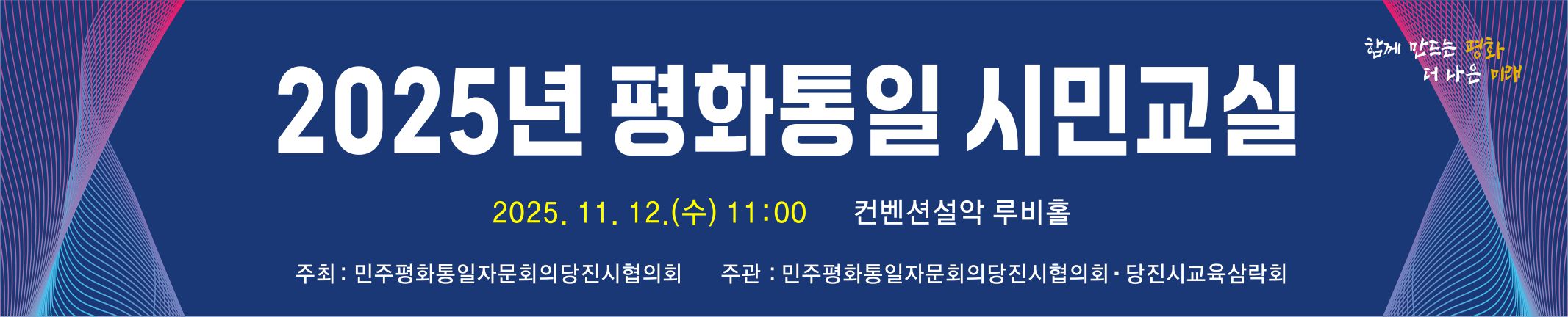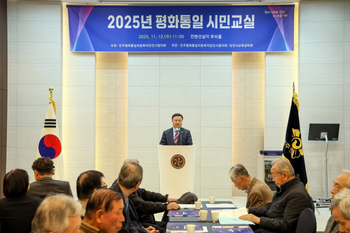 민주평화통일자문회의(이하 민주평통) 당진시협의회(회장 이강수)는 11월 12일(수) 오전 11시, 컨벤션설악 2층 루비홀에서 민주평통 자문위원, 당진시교육삼락회원, 관계자 등 80여명이 참석한 가운데 당진시교육삼락회와 공동 주관으로 '2025년 평화통일 시민교실'을 개최했다.