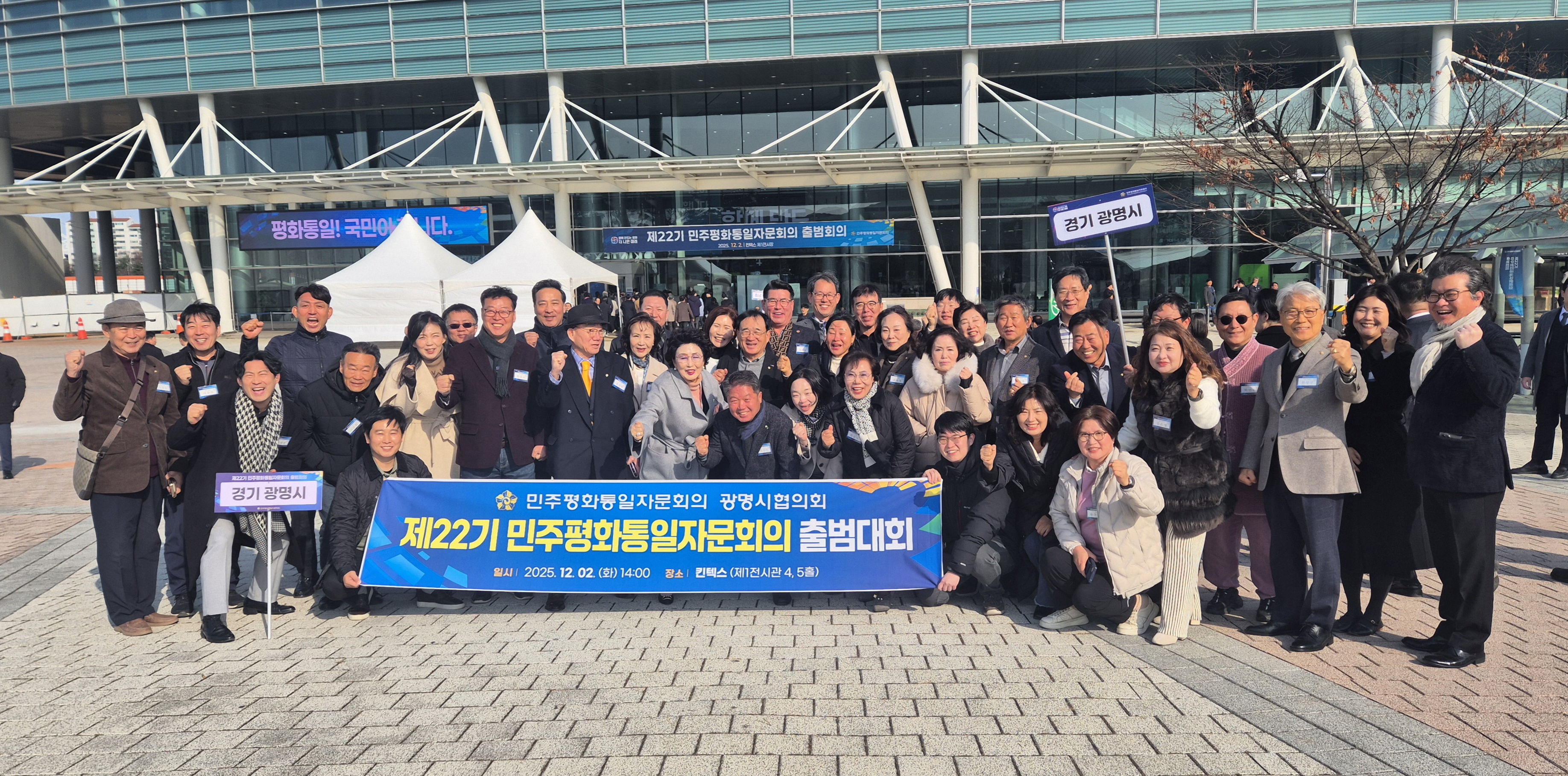 민주평화통일자문회의 경기광명시협의회(회장 이영희)는 2025년 12월 2일(화) 14시, 고양시 일산 킨텍스 제1전시장에서 열린 「제22기 민주평화통일자문회의 출범회의」에 자문위원 43명이 참석했다
