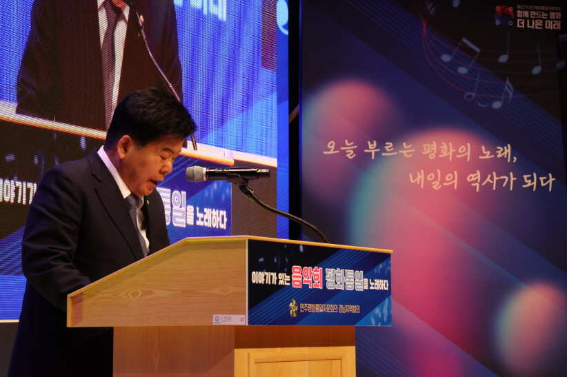 이번 음악회는 영상과 나레이션, 음악이 어우러진 스토리텔링 형식의 공연으로, 분단의 아픔을 되돌아보는 데서 출발해 희망과 화합, 그리고 평화통일의 미래로 나아가는 여정을 ‘음악과 이야기’로 풀어낸다. 민주평통 자문위원을 비롯해 경남도민 300여 명이 참석했다.
