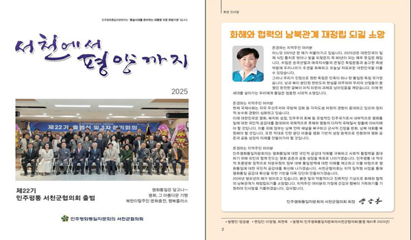 민주평통 서천군협의회(회장 양금봉)는 지역주민 대상으로 평화통일 공감대 확산과 국민과 함께 만드는 평화공존과 공동성장을 목표로 자체 소식지인 '서천에서 평양까지' 제작하였다. 소식지에는 2025년 협의회 통일 활동 사업과 협의회장 인사말, 민주평통 홍보 광고 등이 수록되었다.