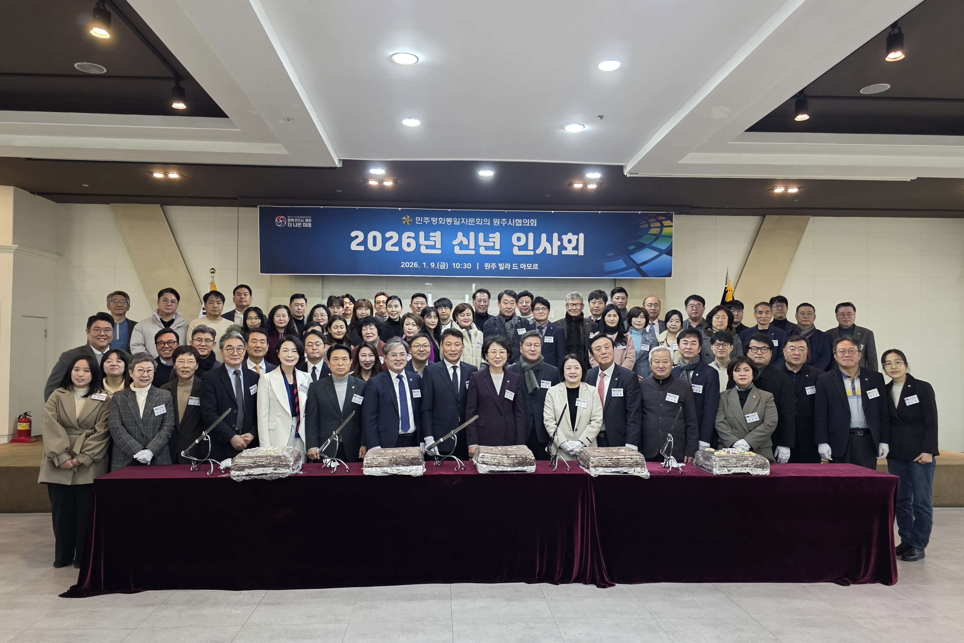 □ 이날 행사에는 민주평통 자문위원과 원주시 부시장, 지역 기관 및 사회단체장 등 80여 명의 주요 인사들이 참석해 자리를 빛냈으며, 새해 인사와 함께 지역발전과 평화통일 실현을 위한 공동의 의지를 다지는 뜻깊은 시간을 가졌다.