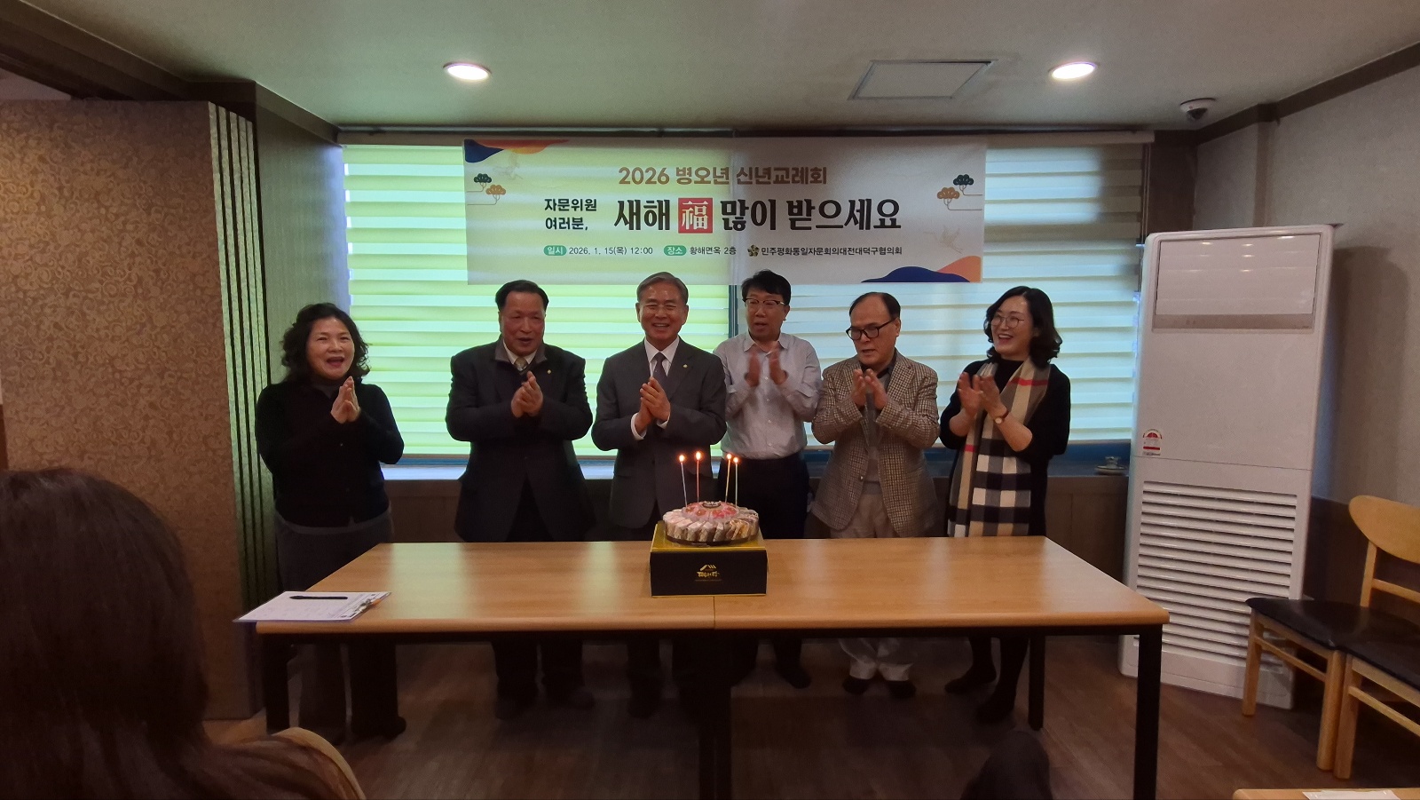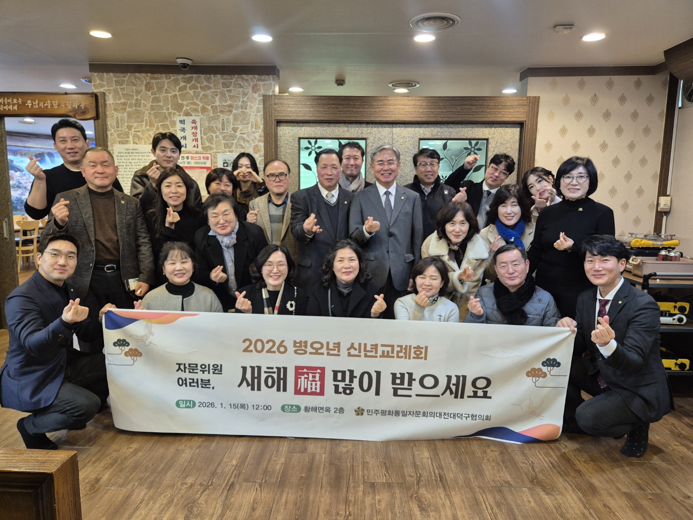 민주평화통일자문회의 대전대덕구협의회(협의회장 박흥용)는 2026년 1월 15일(목) 황해면옥 2층에서 자문위원 30여명이 참석한 가운데 「2026 병오년 신년교례회」를 개최하였다. 이번 신년교례회는 22기 자문위원들이 한자리에 모여 지난 한 해의 노고를 격려하고, 2026년 병오년의 힘찬 출발과 협의회의 새로운 도약을 함께 다짐하는 자리로 마련되었다.
