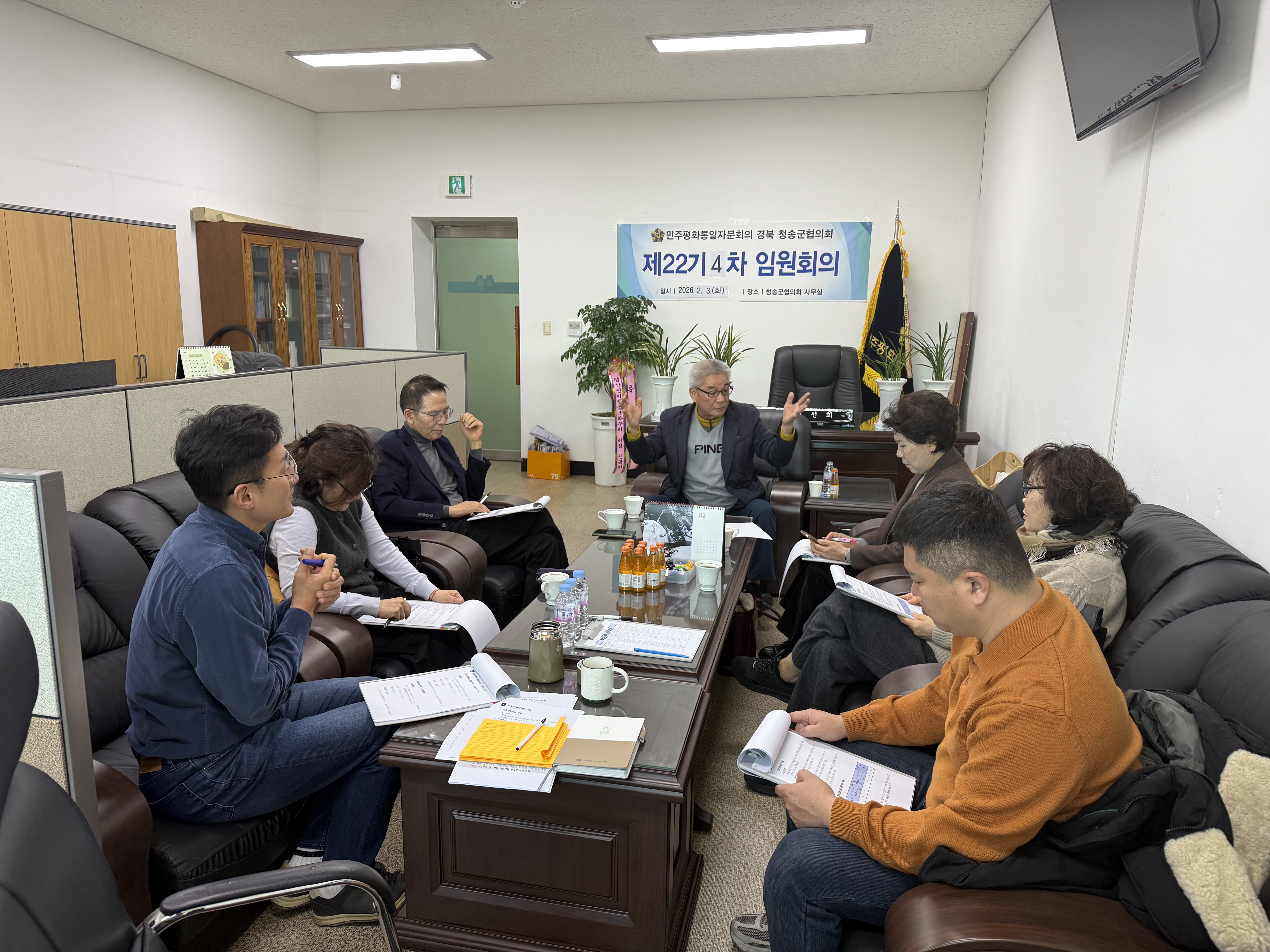 민주평화통일자문회의 경북 청송군협의회(협의회장 신선희)는 2월 3일(화), 11:00 협의회 사무실에서 제22기 4차 임원회의를 개최하였다.
