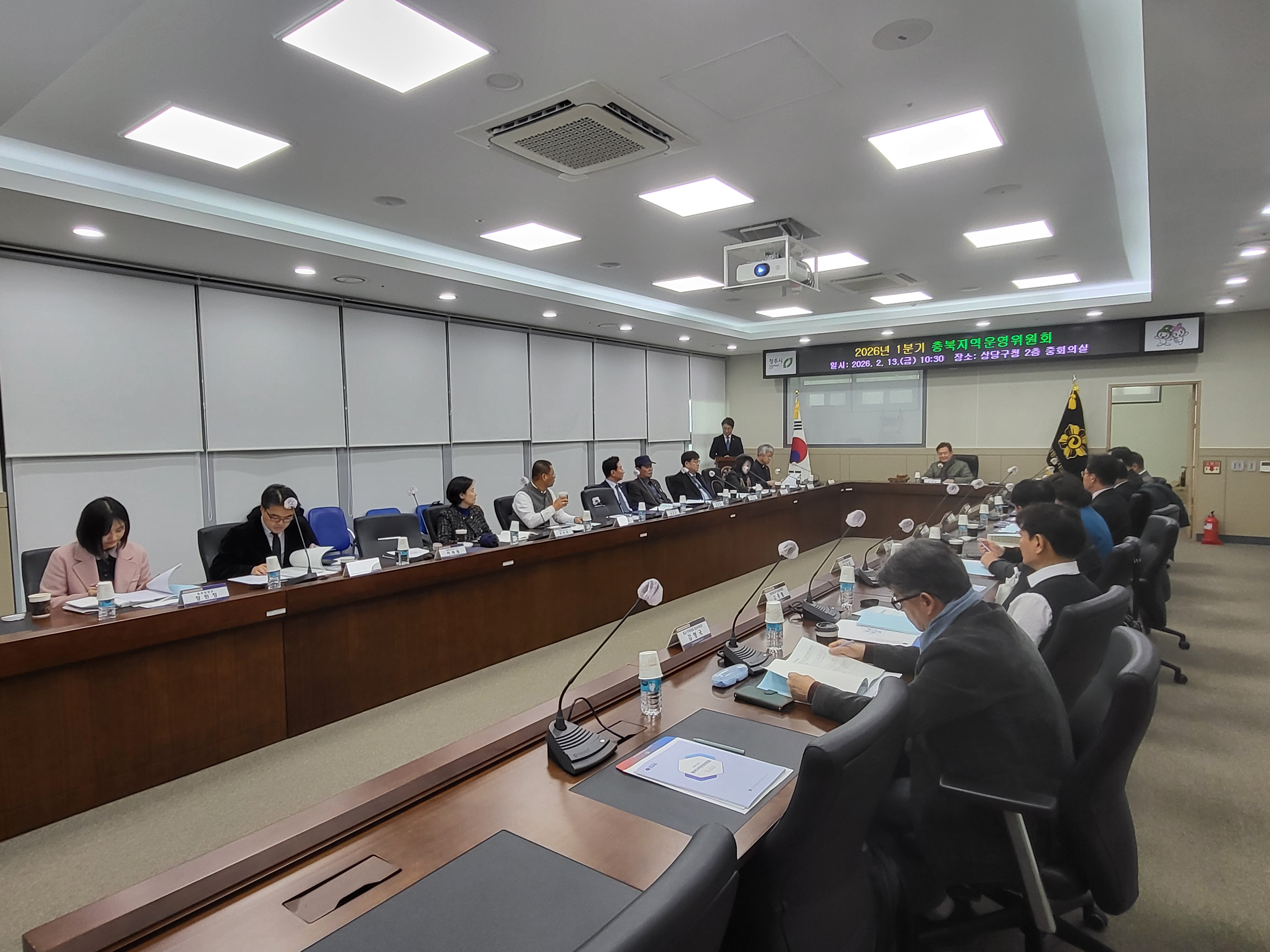 민주평화통일자문회의 충북지역회의(부의장 김병우)는 2월 13일(금) 10:30 상당구청 중회의실에서 충북부의장을 비롯한 시·군협의회 회장, 지역회의 간사, 지역회의 분과위원장, 사무처 관계자 등이 참석한 가운데 『2026년 1분기 충북지역운영위원회』를 개최했다.