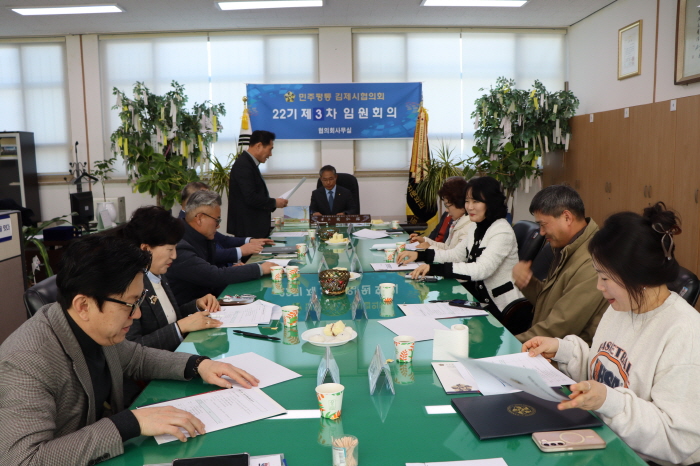 민주평화통일자문회의 김제시협의회(회장:황인환)는 2월25일(수), 15:00 협의회 사무실에서 임원 12명 참석 가운데 제22기 3차 임원회의를 개최하였다