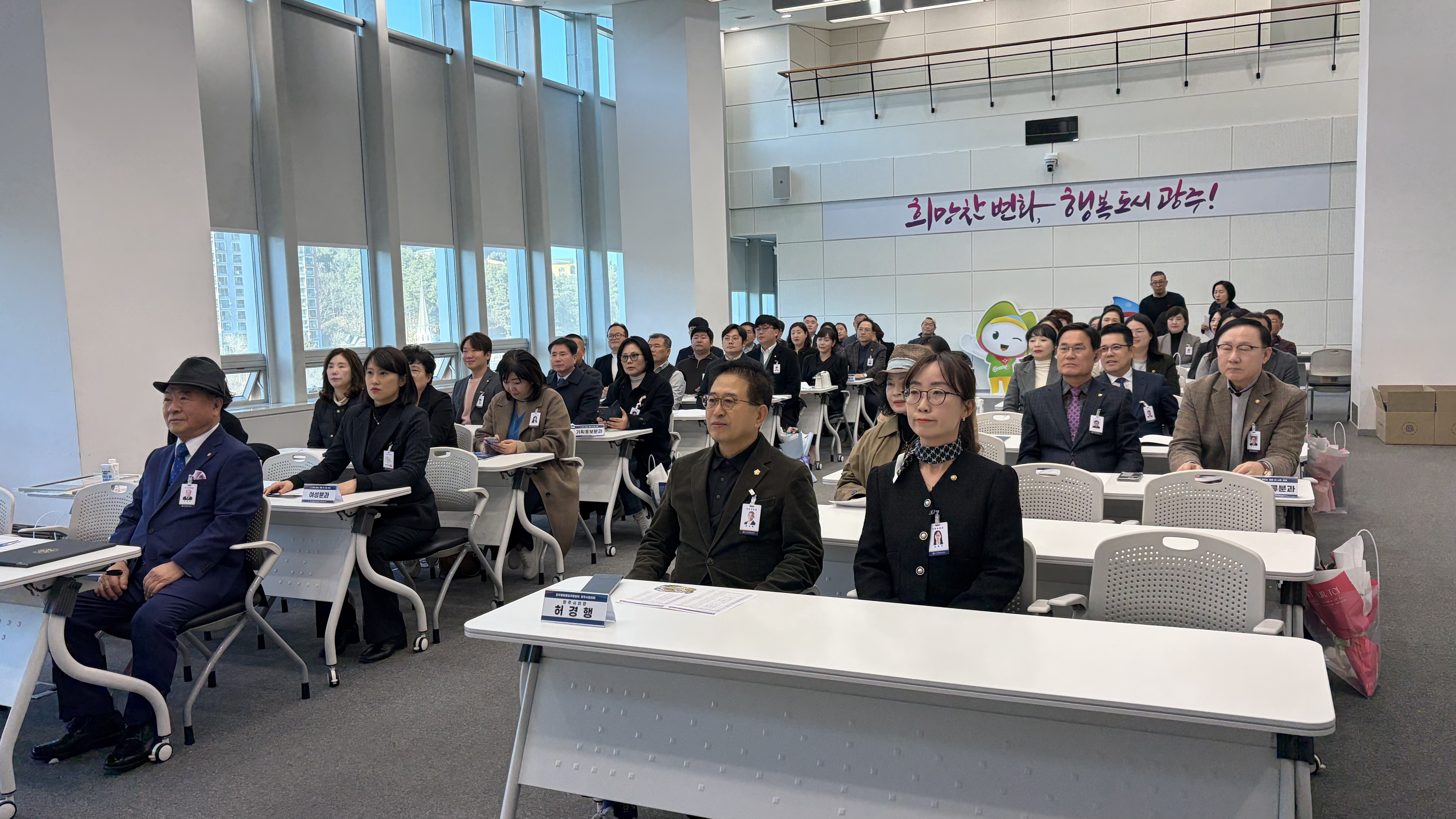 민주평화통일자문회의 경기광주시협의회(협의회장 김상학, 이하 ‘광주시협의회’)는 2월 25일(수) 오후 4시 광주시청 8층 순암홀에서 자문위원 50여 명이 참석한 가운데 ‘한반도 평화공존을 위한 대내외 정책 추진방향’을 주제로 ‘2026년 1분기 정기회의’(이하 ‘정기회의’)를 개최했다.