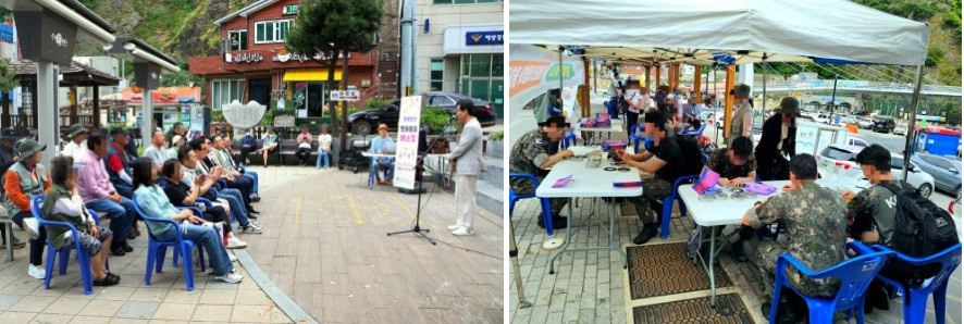 Then, the Peace and Unification Busking and the Unification Golden Bell were held on Ulleungdo Island. Through the Peace and Unification Busking, the participants promoted activities of the PUAC and conveyed the desire for peaceful unification to the island citizens and tourists. The participants also raised the interest of local people in peaceful unification through various programs such as North Korea-related quizzes and dalgona and fan making.