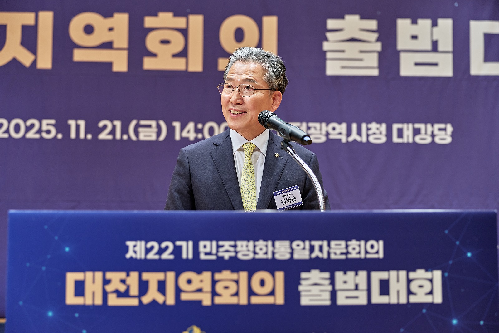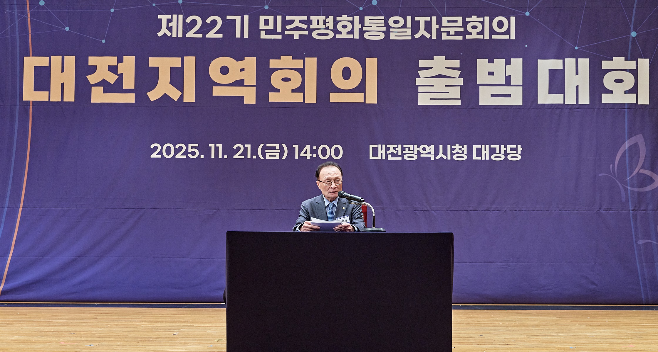 민주평화통일자문회의 대전지역회의(부의장 김병순)는 11월 21일(금) 대전광역시청 대강당에서 『제22기 대전지역회의 출범대회 』를 개최했다. 이날 출범대회에는 이해찬 수석부의장, 이장우 대전광역시장, 조원휘 대전광역시의회 의장과 자문위원 400여 명이 참석해 제22기 대전지역회의의 힘찬 출발을 알렸다.