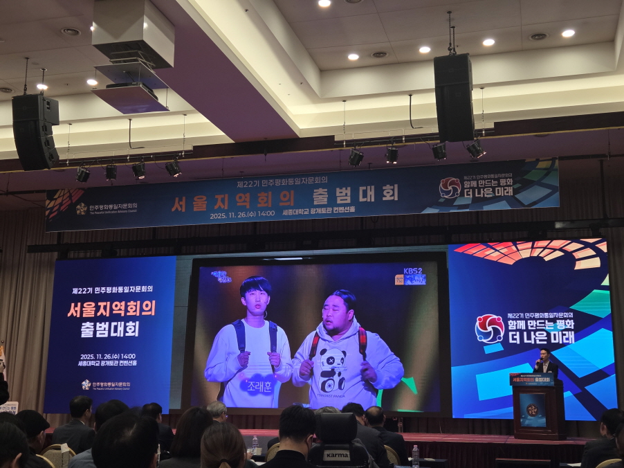 민주평화통일자문회의 서울지역회의(부의장 제성호)는 11월 26일(수) 세종대학교 광개토관 컨벤션홀에서 『제22기 서울지역회의 출범대회』를 개최했다. 이날 출범대회에는 이해찬 수석부의장, 제성호 서울부의장, 서울지역 25개 협의회장을 비롯한 자문위원 1600여 명이 참석했다.