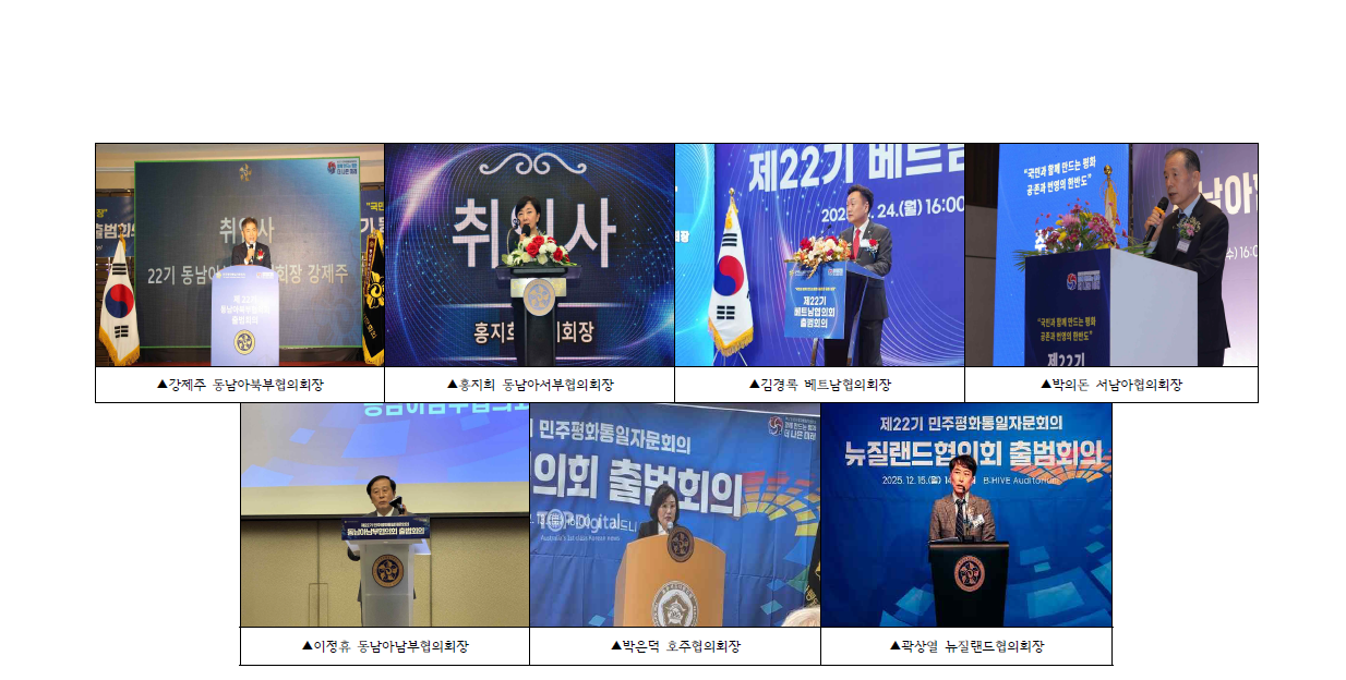 각 지역 협의회장들은 취임사를 통해 아시아·태평양지역이 평화 공존과 공동 성장의 새 한반도를 열어가기 위해 평화통일 활동 및 통일공공외교 활동에 앞장설 것이라고 포부를 밝히며 제22기의 시작을 알렸다.