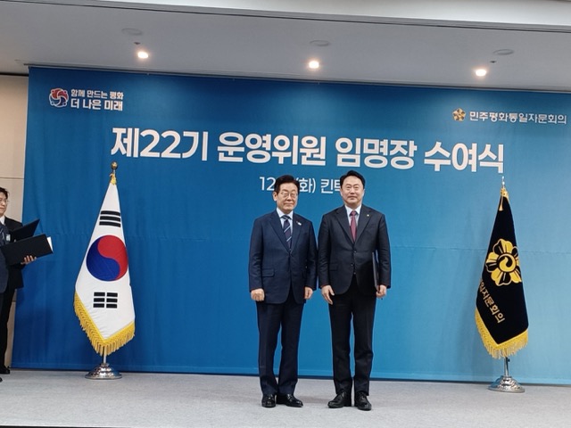 12월 2일에부터 개최된 22기 민주평통 출범회의에는 민주평통 의장이신 이재명 대통령께서 참석하였으며 “분단비용을 기회 비용으로 바꾸아 성장동력으로 이루어 내어 현재의 코리아 리스크를 코리아 프리미엄으로 전환할수 있으며, 전쟁 종식과 분단을 극복하는 온전한 평화 정착은 우리의 민주주의를 완성하는 길이며, 적대와 대결의 과거를 마감하는 것이기에 이를 위하여 전쟁 걱정 없는 평화로운 공존과 공동성장하는 세상을 위해 자문위원님들께서 힘을 모아주시길 당부드린다.”고 하였다..