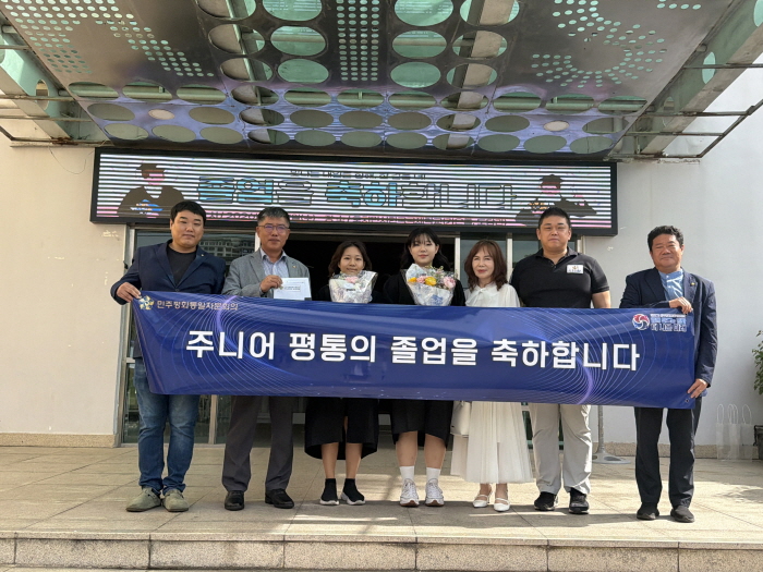 준비한 졸업 축하선물을 직접 주니어평통들에게 전달하며 졸업을 축하해