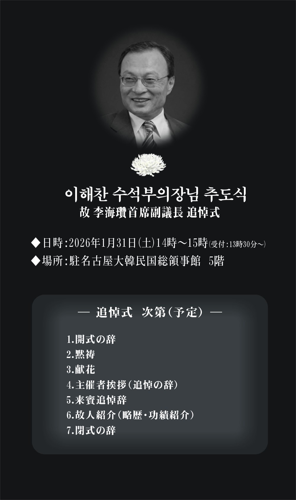 또한, 조문 후에는 일본지역회의 김이중 부의장과 면담을 통해 1월 31일 토요일 오후 2시로 예정된 일본중부협의회 주최 추모식에 대한 내용을 공유하였다.