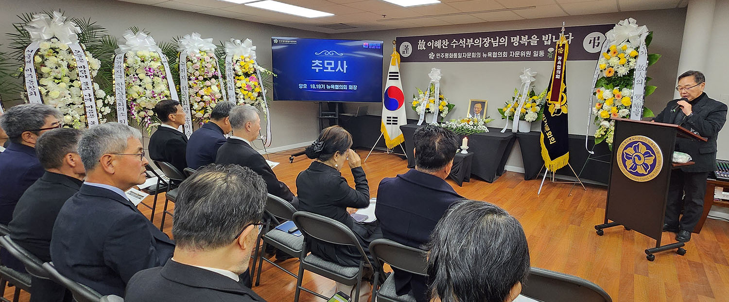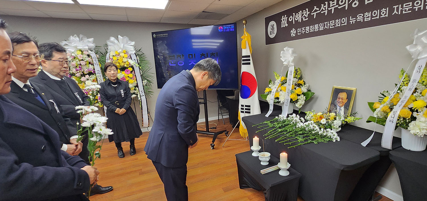 민주평화통일자문회의 뉴욕협의회(회장 이시화)는 27일 뉴욕협의회 회의실에서 고(故) 이해찬 민주평화통일자문회의 수석부의장 추모행사를 개최하고, 대한민국 민주주의와 한반도 평화·통일을 위해 평생을 헌신한 고인의 뜻을 기렸다.
