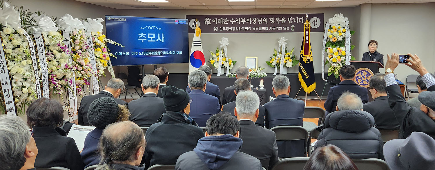 또한 이에스더 미주 5·18민주화운동기념사업회 대표는 “민주주의는 한 세대에서 끝나는 것이 아니라 계승되어야 할 역사”라며, “이해찬 수석이 걸어온 민주화의 발걸음을 다음 세대가 이어갈 수 있도록 기억하고 행동하는 것이 가장 큰 추모”라고 말했다.
