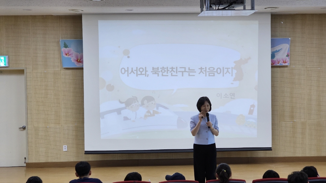 이소연 통일강사는 ‘어서와, 북한친구는 처음이지’란 주제로 강의를 진행하였으며, 북한의 실상을 설명하고 북한 학생들의 학교 생활, 남북한의 뜻은 같지만 다른 언어 등의 강의, 퀴즈로 알아보는 DMZ 등의 체험활동을 통해 흥미와 재미를 유도하고 평화통일의 중요성과 필요성에 대해 쉽게 이해할수 있는 시간을 가졌다.