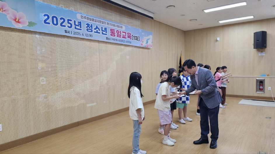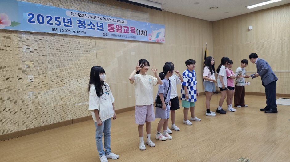 민주평화통일자문회의 의왕시협의회(협의회장 엄태원)는 6월 12일(목) 백운호수초등학교 5학년 대상으로 청소년 통일교육을 실시했다.