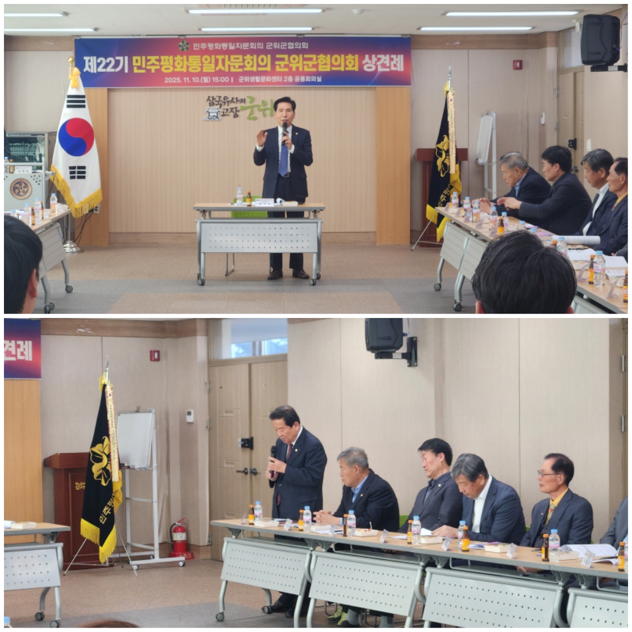 민주평화통일자문회의 군위군협의회(회장 전기식)는 2025년 11월 10일(월) 15시, 생활문화센터 2층 공용회의실에서 제22기 민주평통 군위군협의회 상견례를 가졌다.