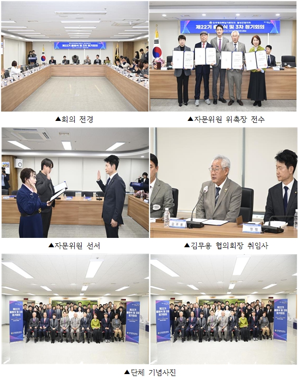 이번 회의는 ▲제22기 자문위원 안내(영상) ▲22기 달성군협의회 구성현황 보고 ▲21기 임원 공로패 및 감사장 수여(대행기관장, 21기협의회장, 22기협의회장) ▲자문위원 위촉장 전수 ▲자문위원 선서 ▲협의회장 취임사 ▲대구지역부의장 격려사 ▲대행기관장 축사 ▲군의장 축사 ▲22기 협의회 임원 인준 동의 및 소개 ▲자문위원 의견수렴 ▲기념촬영 ▲간담회 순으로 진행되었다.