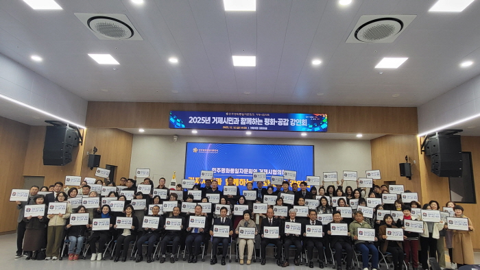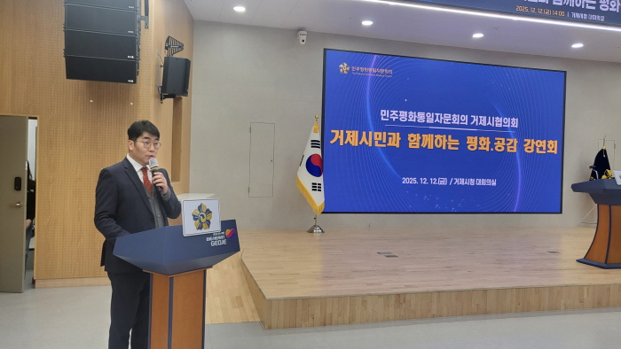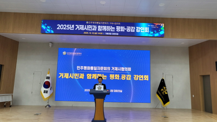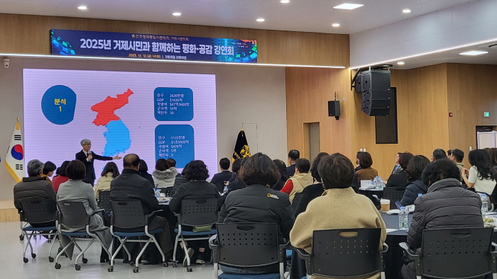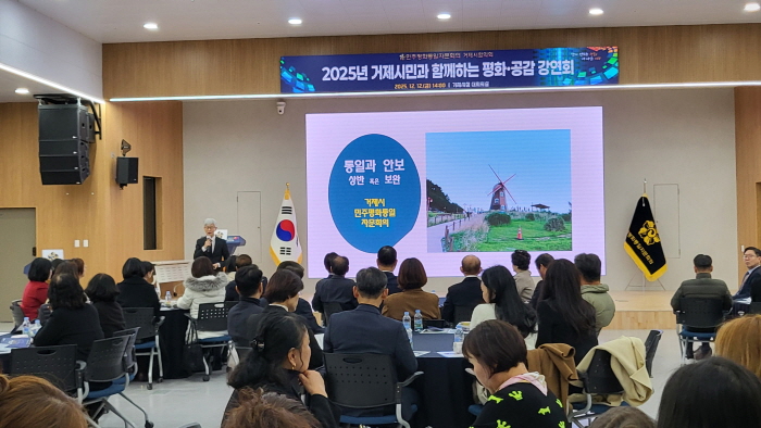 민주평화통일자문회의 거제시협의회(회장 김점수)는 12월 12일(금요일) 오후2시 ‘2025년 거제시민과 함께하는 평화·공감 강연회’를 지역사회 직능 단체회원과 시민, 자문위원, 북한이탈주민 등 130여명이 참석한 가운데 거제시청 대회의실에서 성황리에 개최 했다.