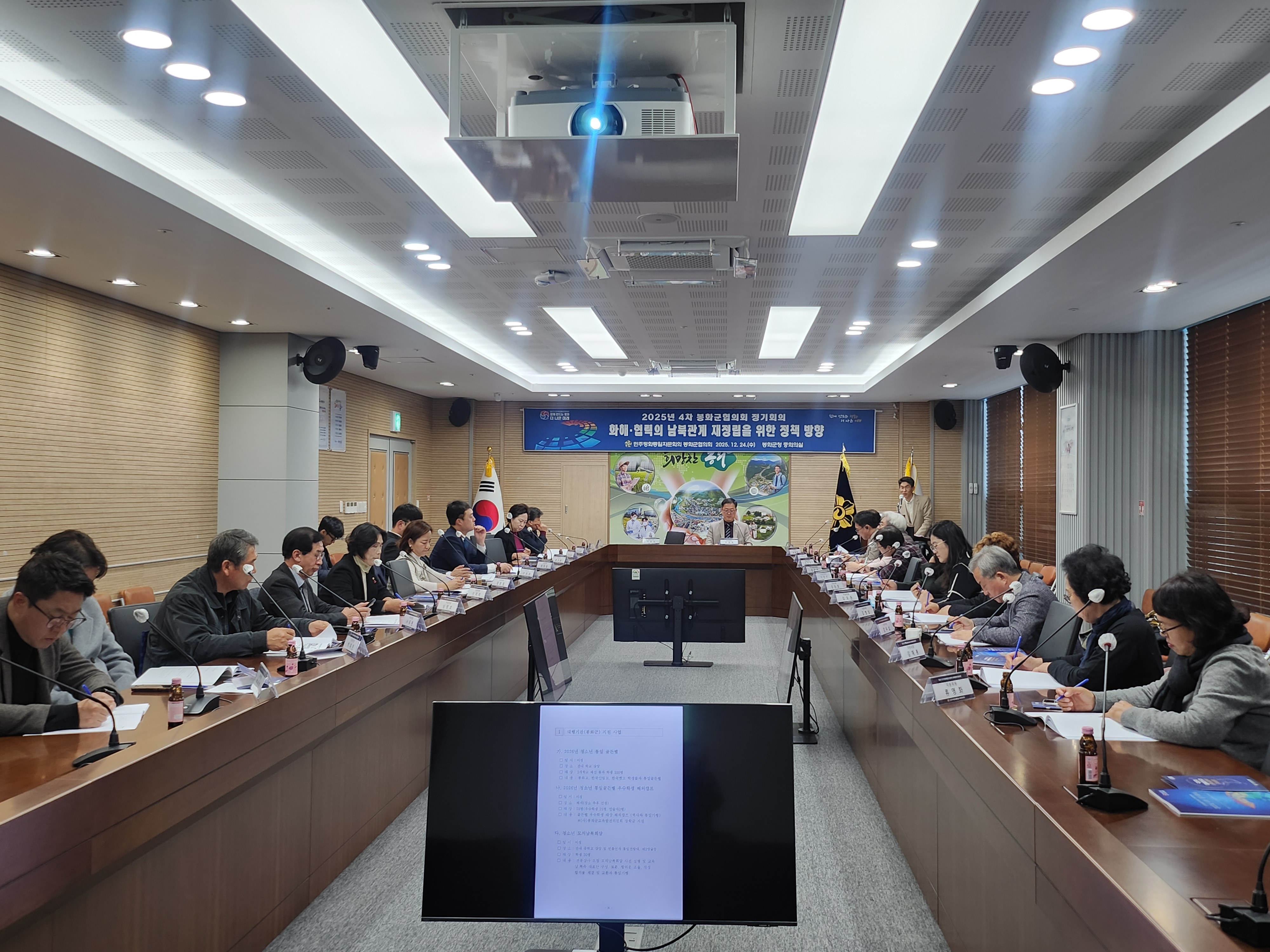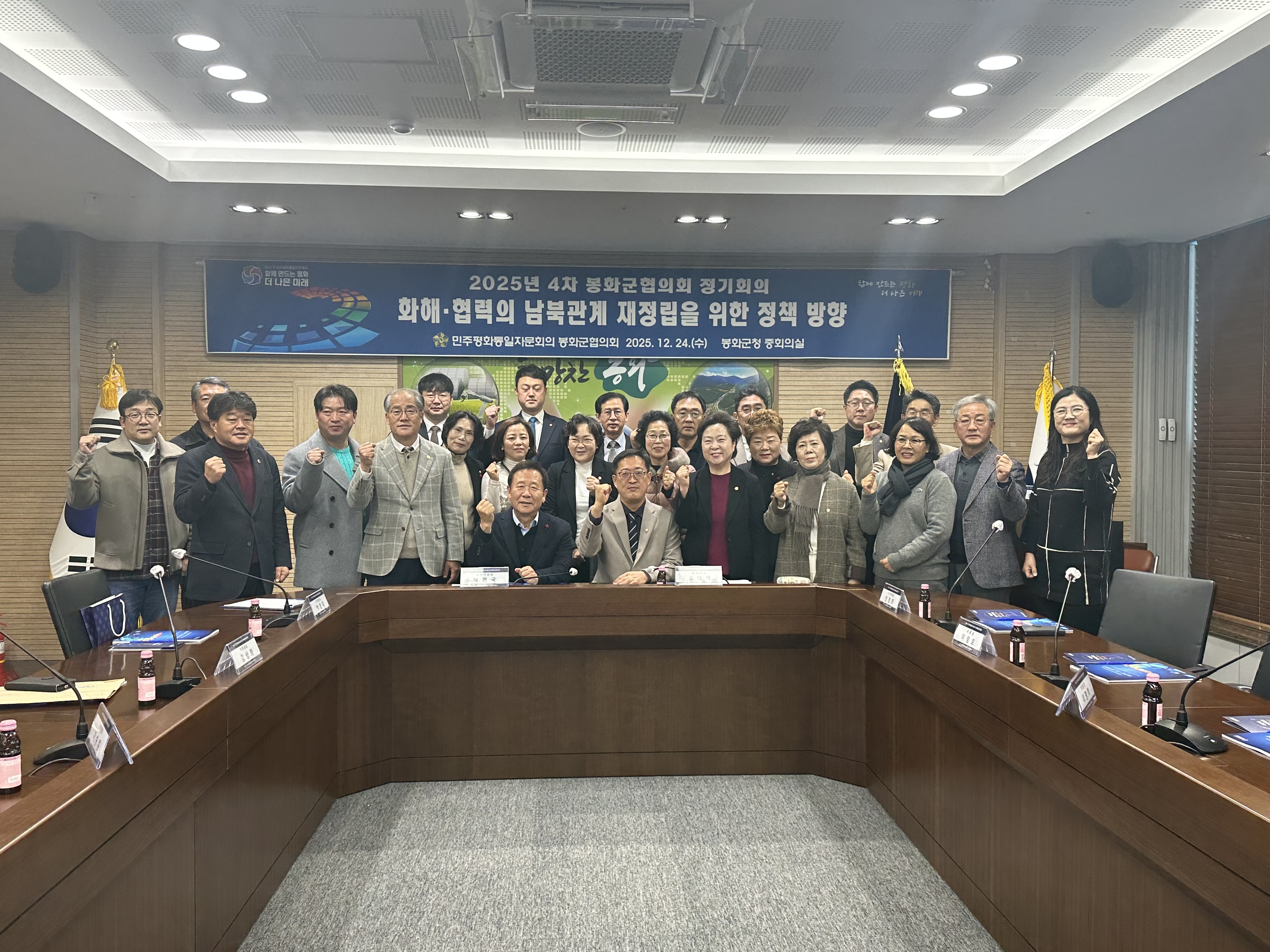 민주평화통일자문회의 봉화군협의회(협의회장 유태백)는 12월 24일(수) 11시 봉화군청 중회의실에서 박현국 군수, 자문위원 등 40여명이 참석한 가운데‘화해·협력의 남북관계 재정립을 위한 정책방향’을 주제로‘2025년 4차 정기회의’를 개최했다.