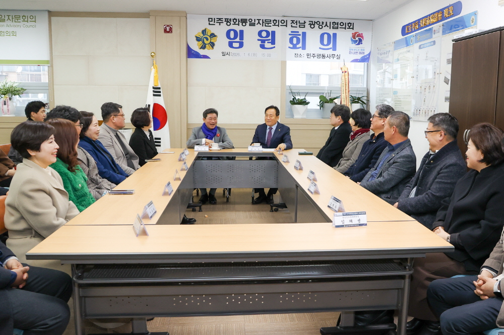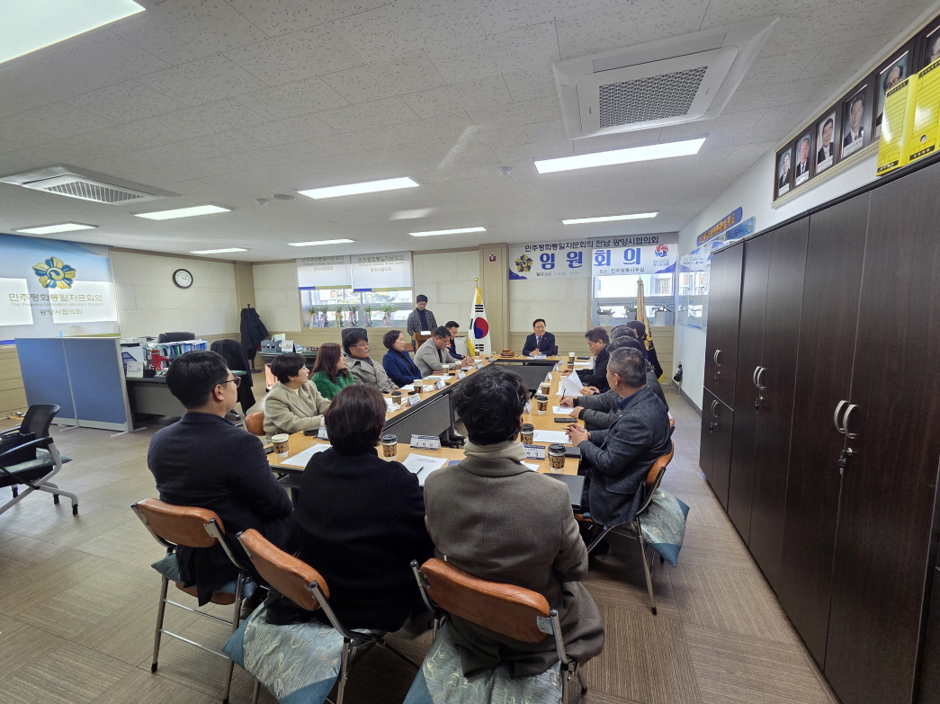 민주평화통일자문회의 전남광양시협의회(회장 박노신)는 2026. 1. 6.(화) 15시 민주평통 협의회사무실에서 제22기 임원진이 참석한 가운데 “2026년 1월 임원회의 및 민주평통 현판 제막 행사” 를 개최하였다.