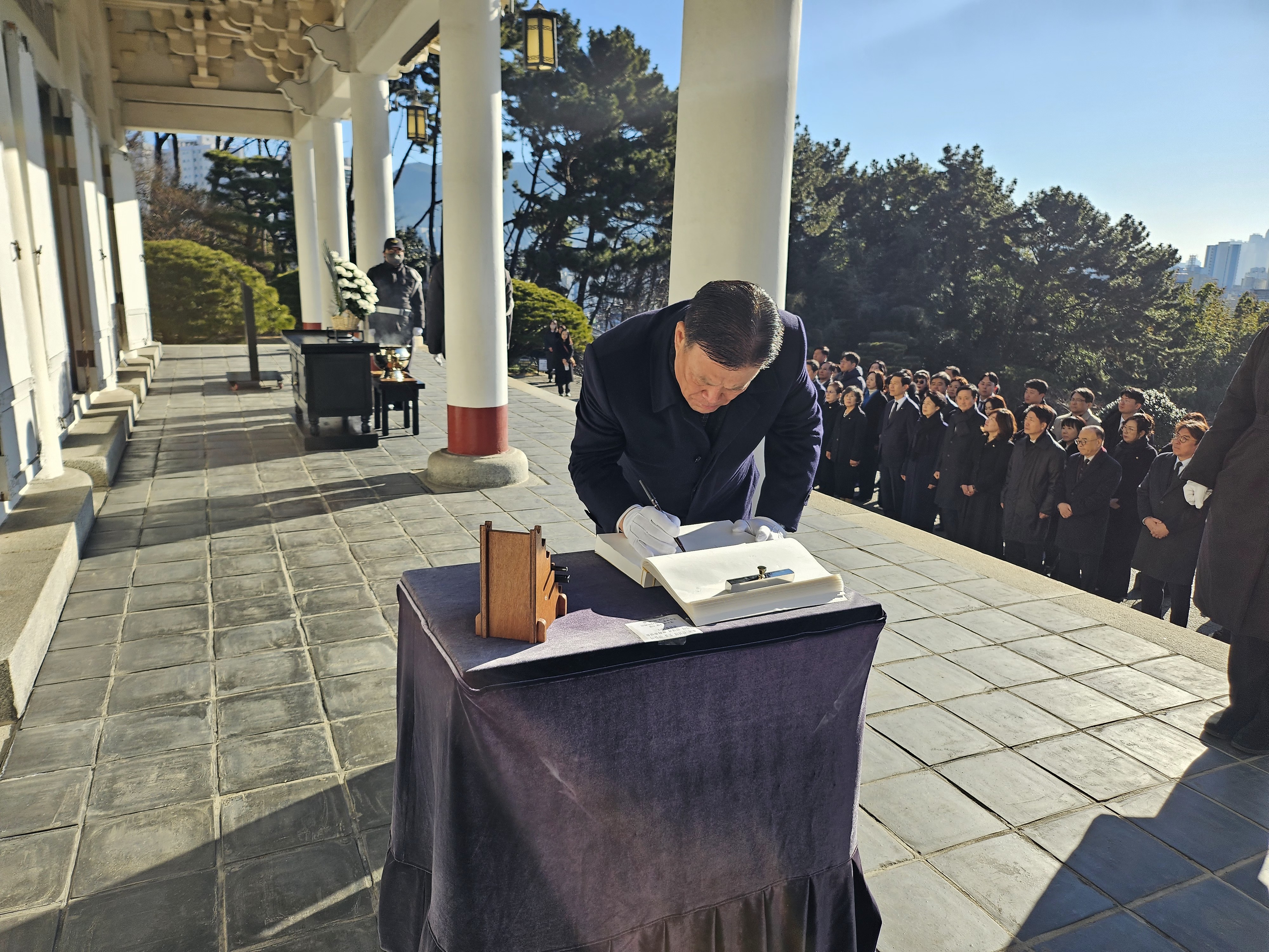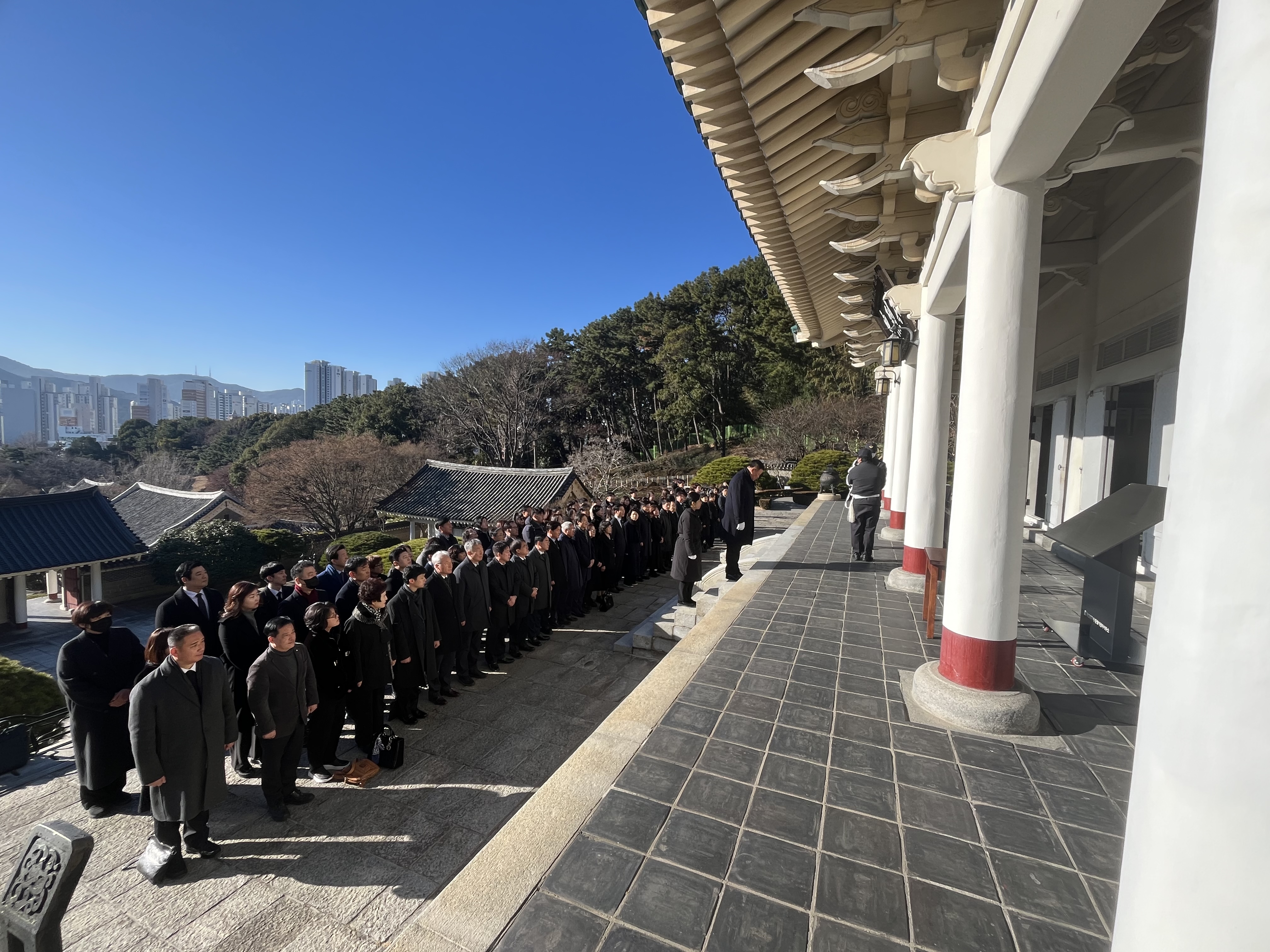 민주평화통일자문회의 부산지역회의(부의장 박사익)는 지난 1월 6일 오전 10시, 박사익 부의장 주최로 부산지역 간부 자문위원 등 100여 명이 참석한 가운데 충렬사 참배 및 신년인사회를 개최하였다.
