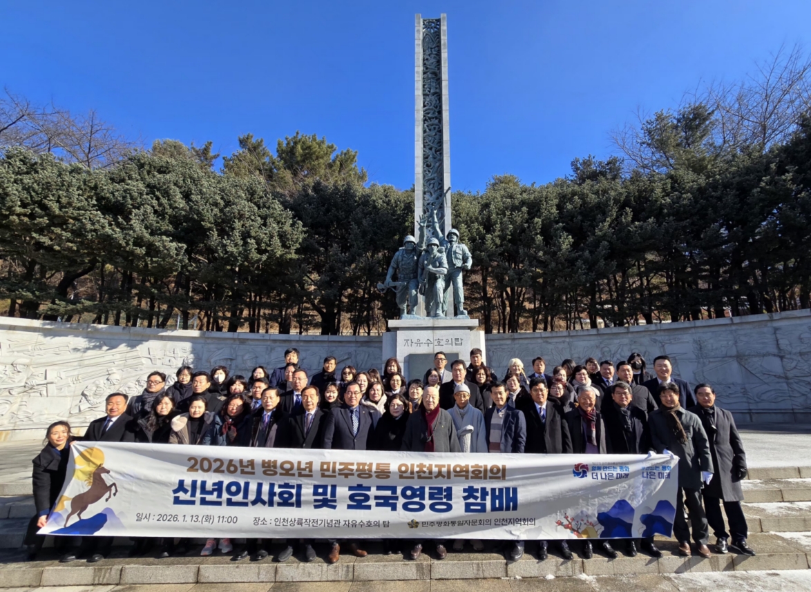 민주평화통일자문회의 인천지역회의(부의장 법륜(정재준))는 1월 13일 오전11시, 인천상륙작전기념관에서 인천협의회장, 자문위원 등 60여 명이 참석한 가운데 ‘2026년 병오년 민주평통 인천지역회의 신년인사회 및 호국영령 참배’를 개최하였다.
