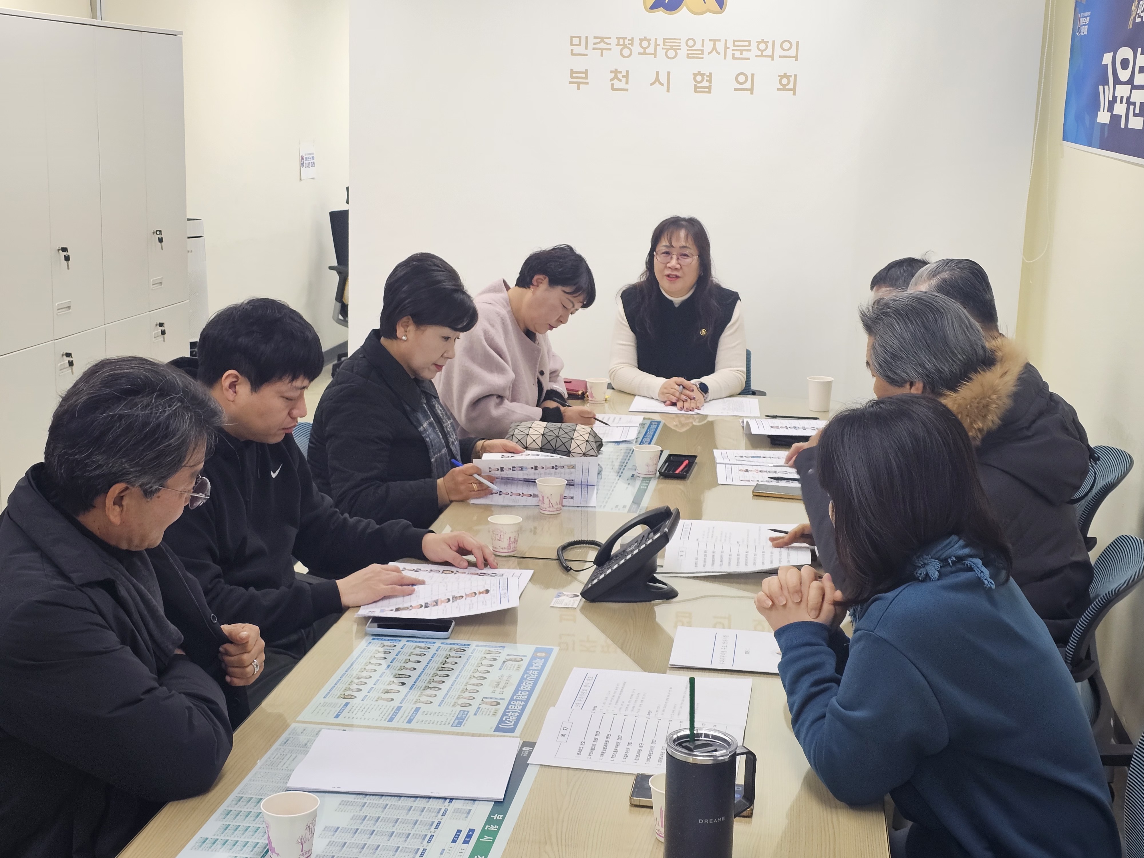 민주평화통일자문회의 부천시협의회(협의회장 심방식) 교육분과(위원장 이경숙)는 1월 26일(월) 오전 11시 30분, 협의회 사무실에서 협의회장과 지회장, 간사, 교육분과위원 등 총 14명이 참석한 가운데 ‘제22기 1차 교육분과회의’를 개최했다.