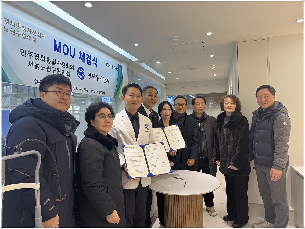 민주평화통일자문회의 서울노원구협의회(회장 김충규)와 연세우리안과의원(대표원장 이규호)이 2월 6일(금) 12시 30분 연세우리안과의원에서 북한이탈주민의 의료복지 증진을 위한 업무협약(MOU)을 체결하였다.