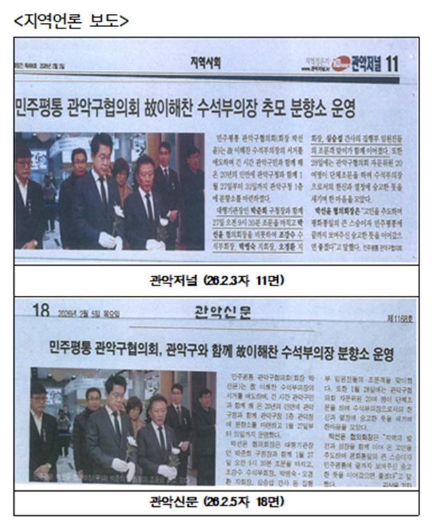 관악구에서의 특별한 인연 새기며 관악구청과 관악구협의회 함께 분향소 마련