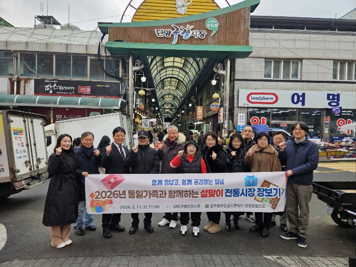 민주평화통일자문회의 단양군협의회(회장 김종태)는 설 명절을 맞아 2월 11일(수) 단양구경 전통시장에서 「2026년 통일가족과 함께하는 설 맞이 전통시장 장보기」 행사를 진행했다.