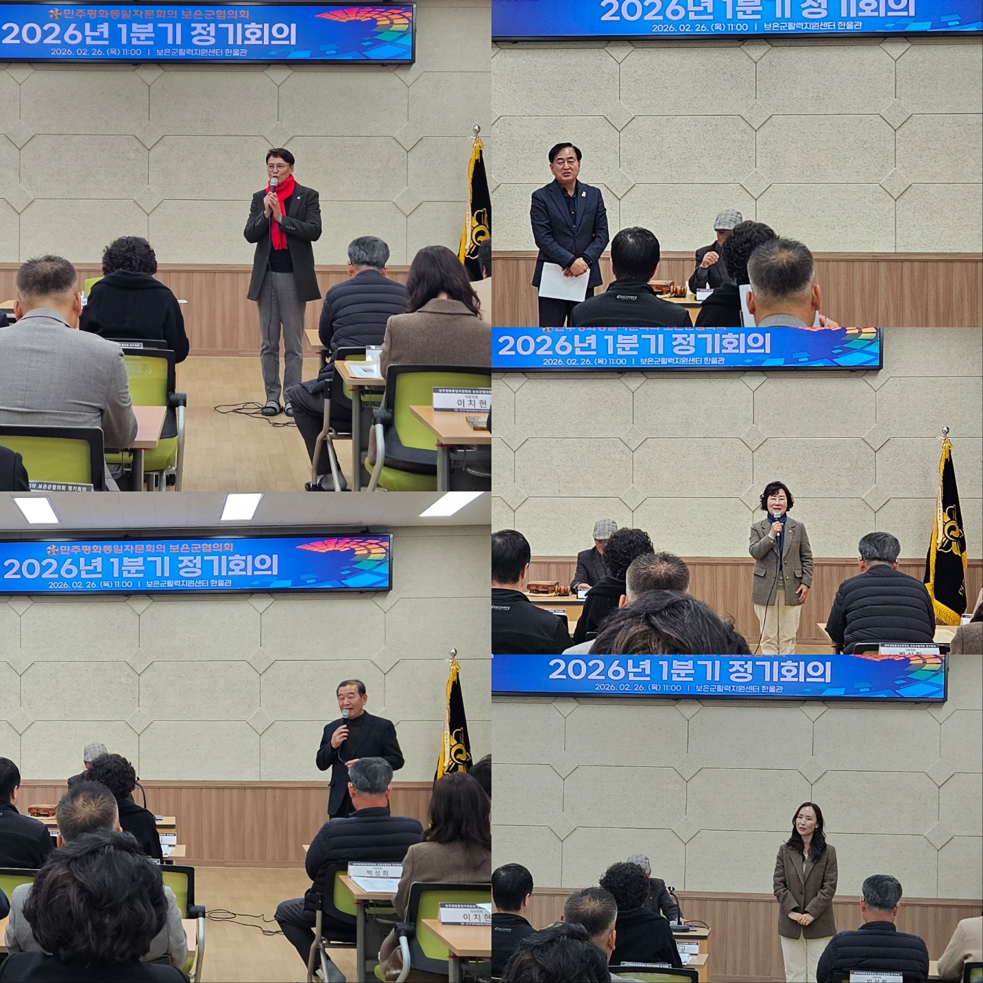 민주평화통일자문회의 보은군협의회(회장 박헌열)는 2월 26일(목) 11시에 보은군활력지원센터 한울관에서 자문위원 및 관계자 등이 참석한 가운데 2026년 1분기 정기회의를 개최하였다.