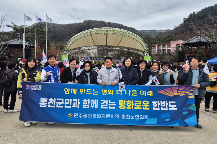 민주평화통일자문회의 홍천군협의회(회장 박상록)는 3월 1일(금) 오후 2시 토리숲 일원에서 개최된 ‘107주년 3·1절 기념 및 한반도 평화공존 염원 걷기대회’에 참가했다.