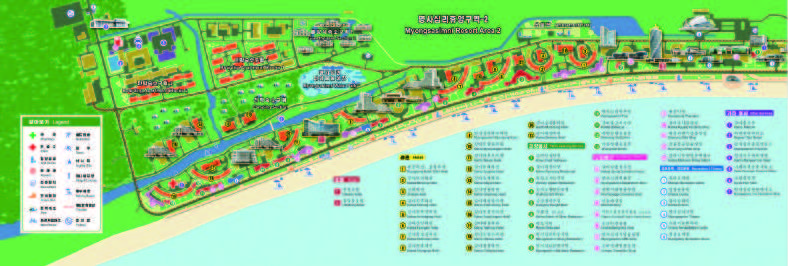 一方、自国民用と外国人用の区域が別々に設けられているかは定かではないが、西側に位置する第2区域は元山市内から近い上に、旅館が多く、民宿施設やテント区画が整備されていることから、自国民の観光に重点的に活用される可能性がある。東側の第1区域は、東海に近く市街地から離れているため、一般住民との接触を遮断しやすく、第2区域に比べて飲食店や商業施設が多く存在しており、保険や金融関連施設が立地している点が特徴的である。