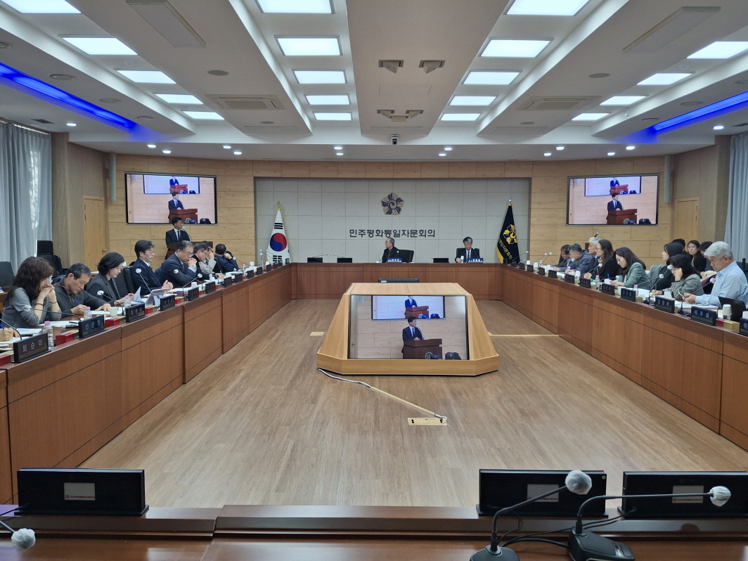 민주평화통일자문회의 기획·조정분과위원회(위원장 양무진)는 11월 14일(금) 14:00, 사무처 1층 회의실에서 각 분과위원회 위원장과 간사, 기획·조정분과위원 등 27명이 참석한 가운데 2025년 4분기 기획·조정분과위원회 회의를 개최하고 4분기 정책건의 대주제와 추진 방향을 정했다.