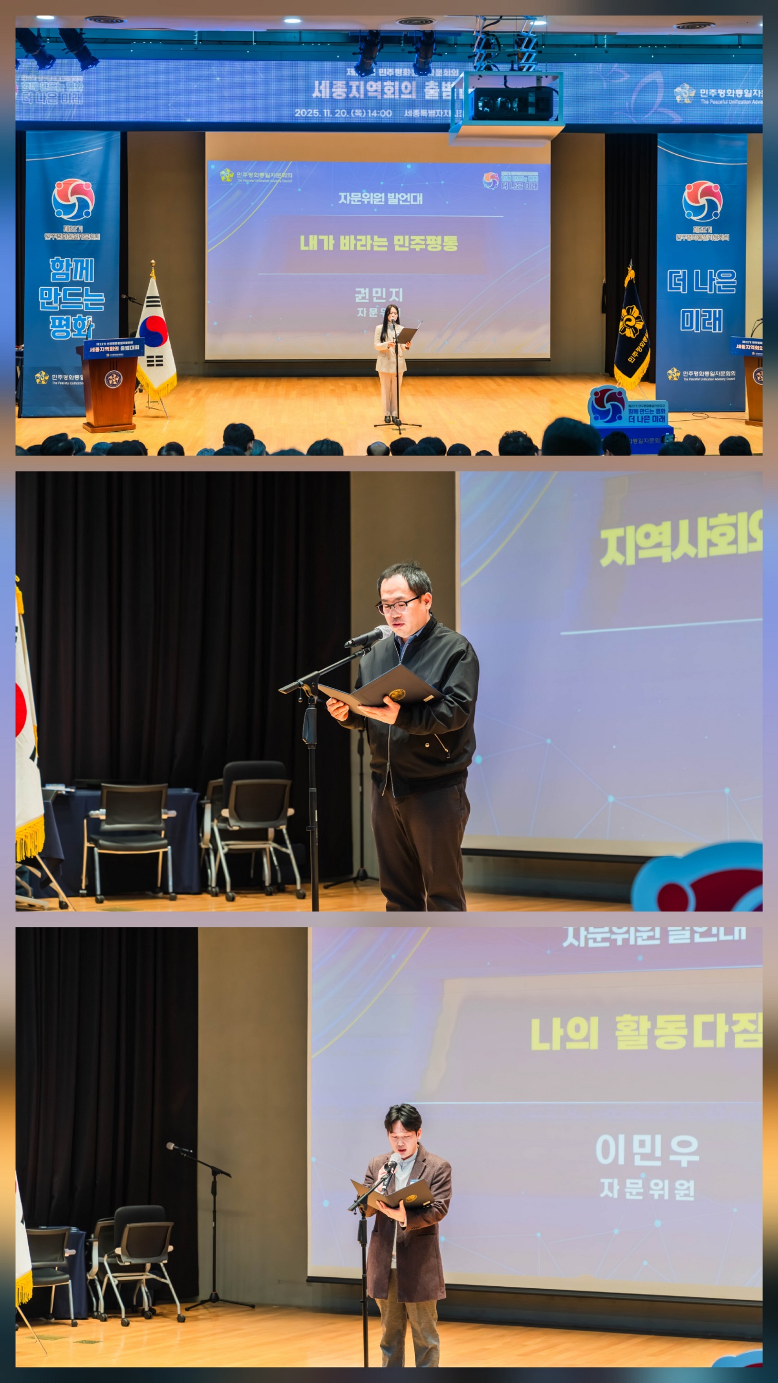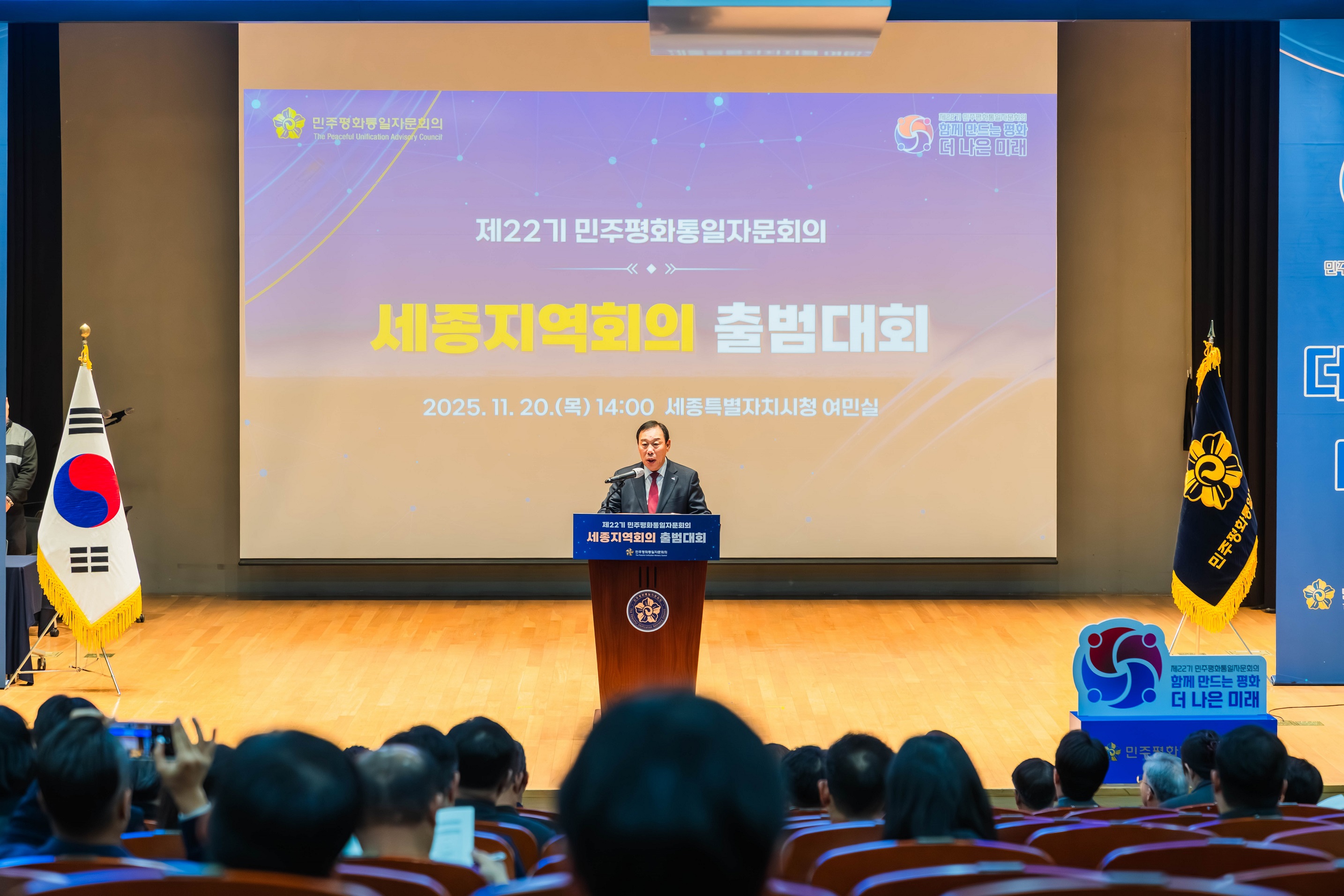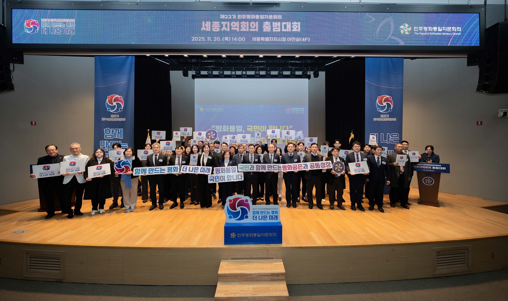 민주평화통일자문회의 세종지역회의(부의장 박진만)는 11월 20일 (목) 세종특별자치시청 여민실에서 『제22기 세종지역회의 출범대회 』를 개최했다. 이날 출범대회에는 이해찬 수석부의장, 최민호 세종특별자치시장, 임채성 세종특별자치시의회의장과 자문위원 100여 명이 참석해 제22기 세종지역회의의 본격 출범을 알렸다.