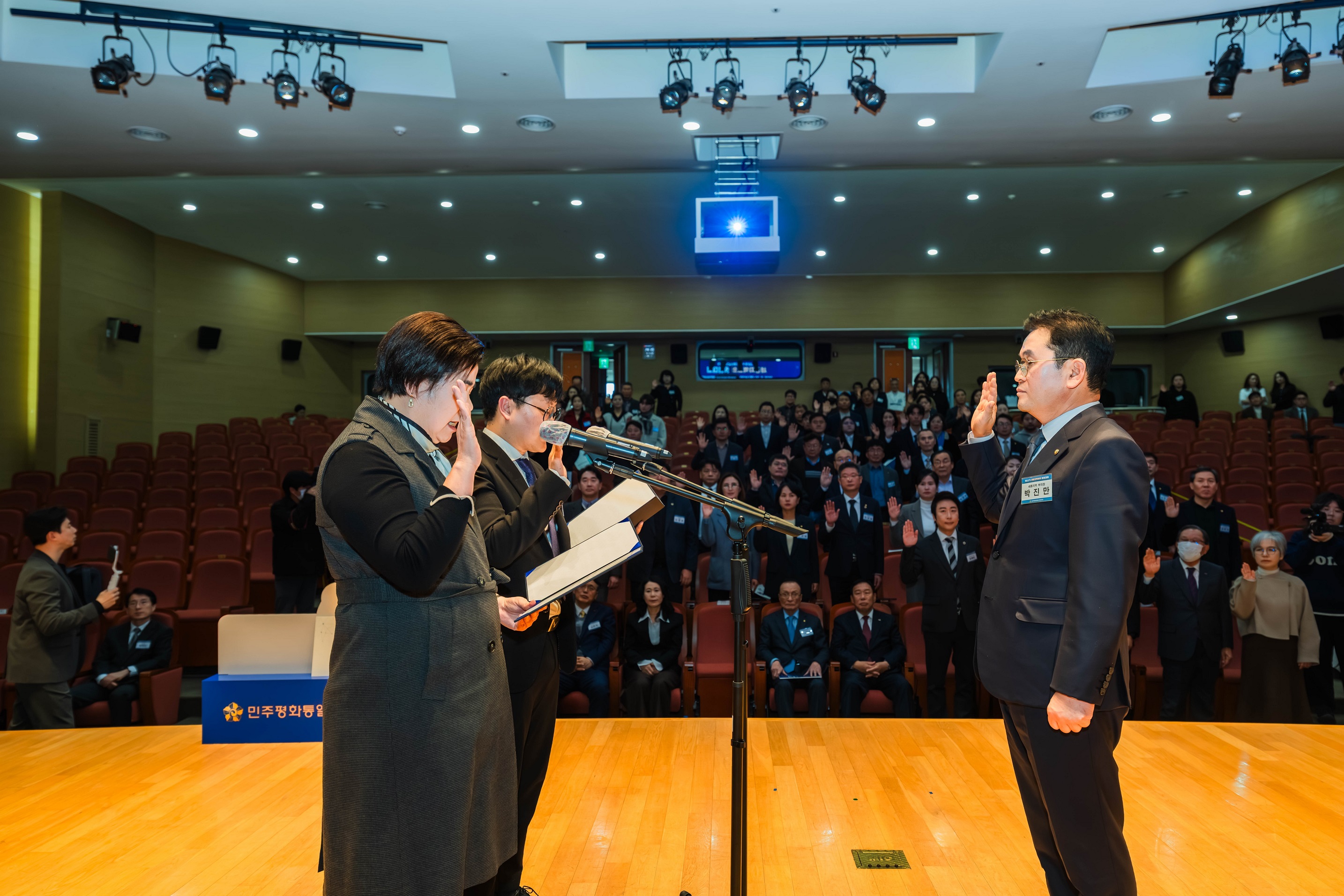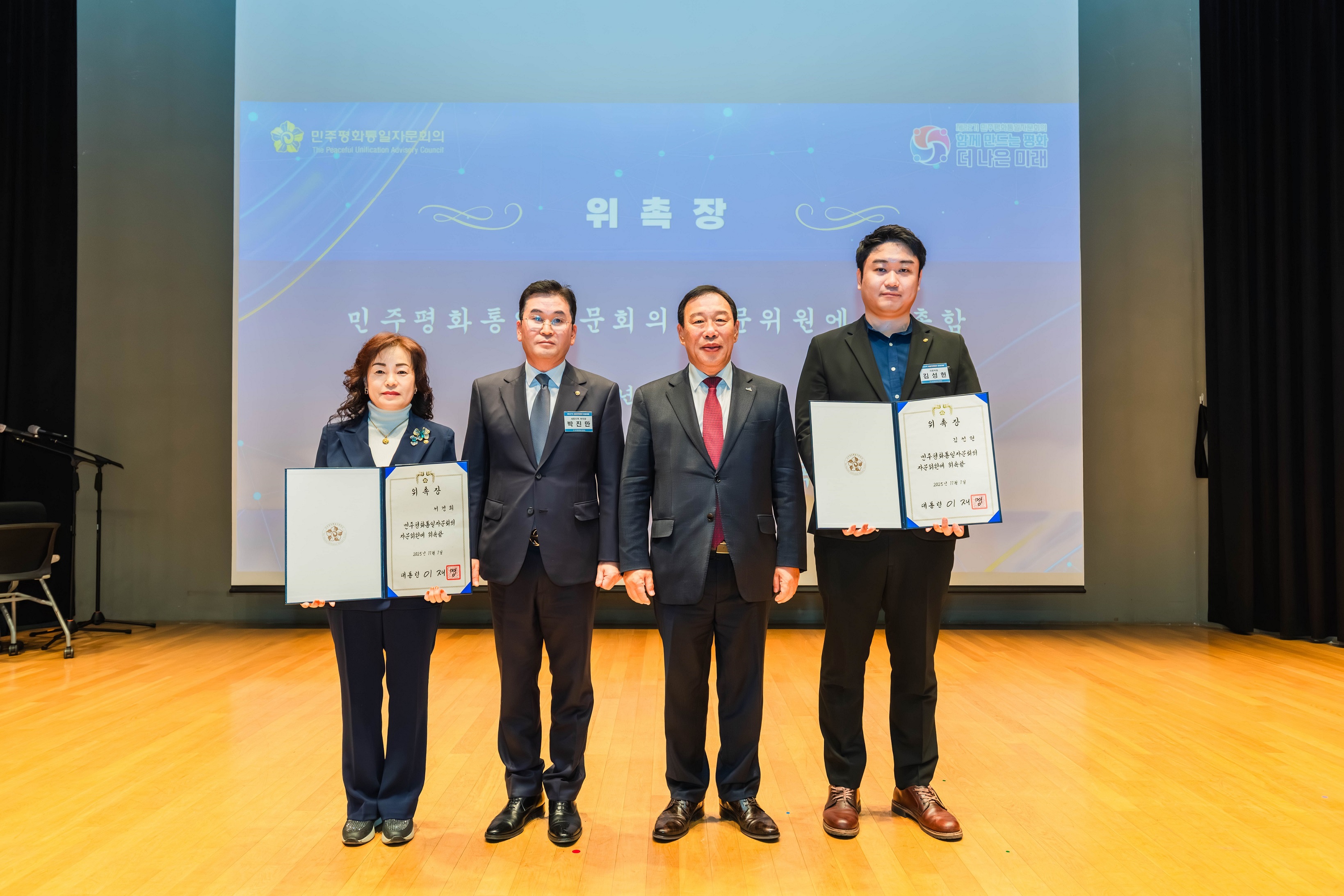 이어 민주평통법 제12조에 따라 자문위원 선서를 진행했다. 이채원 자문위원과 강기훈 자문위원이 대표로 단상에 올라 자문위원으로서 국법을 준수하고 맡은 바 사명을 성실히 수행할 것을 선서했다.