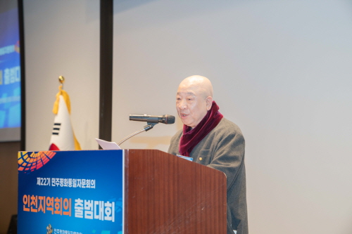 제22기 인천지역회의가 새롭게 출범했다. 민주평화통일자문회의 인천지역회의(부의장 법륜(정재준))는 11월 24일(월) 인천 송도센트럴파크호텔 다이아몬드홀에서 『제22기 인천지역회의 출범대회』를 개최했다. 이 날 행사에는 인천지역 10개 구·군 협의회장과 자문위원들이 함께했으며, 대행기관장인 유정복 인천광역시장과 박찬대(인천 연수구 갑), 정일영(인천 연수구 을) 지역구 의원도 참석해 인천지역회의의 새 출발을 함께 축하했다.