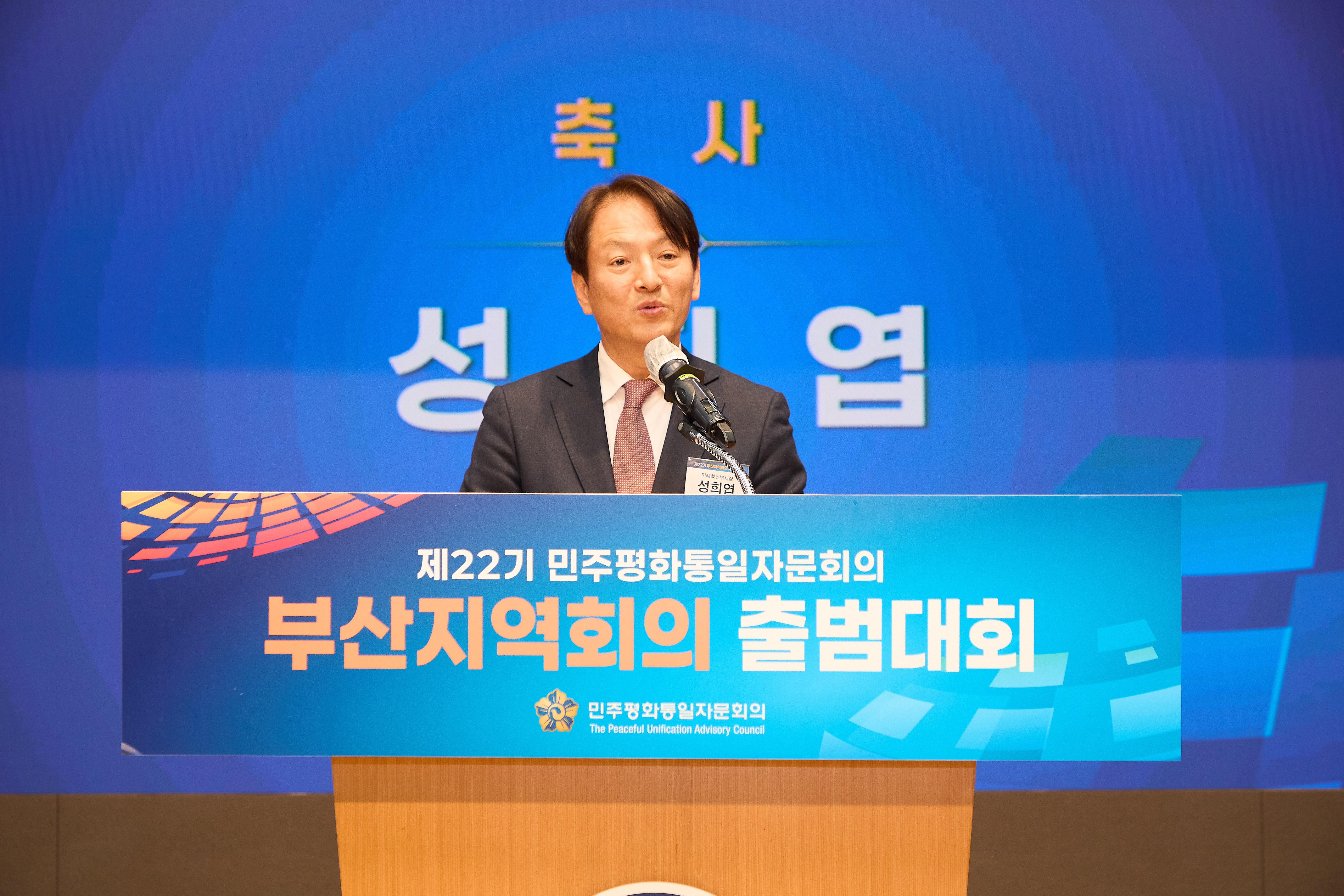 성희엽 부산시미래혁신부시장은 축사를 통해 “제22기 민주평화통일자문회의 부산지역회의의 힘찬 출발을 축하하며, 급변하는 한반도 국제정세 속에서 부산지역회의가 평화통일 운동의 기반을 더욱 굳건히 다지고 국민적 합의를 이끌어내는데 앞장서 주기를 기대한다.”고 말했다.