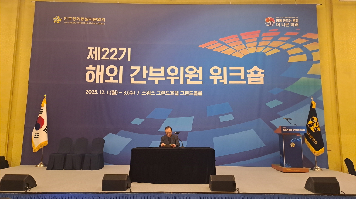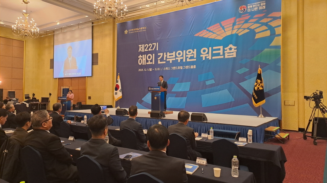 민주평화통일자문회의(수석부의장 이해찬, 사무처장 방용승)는 12월 1일(월)부터 3일(수)까지 서울 스위스그랜드호텔에서 <제22기 해외 간부위원 워크숍>을 개최했다. 이번 워크숍은 새롭게 출범한 제22기 해외조직이 한자리에 모여 국제사회 속에서 민주평통의 역할을 재정립하고, 각 지역 활동의 방향성과 협력 기반을 강화하는 자리로 마련되었다. 해외 부의장, 운영위원, 협의회장, 지회장, 간사 등 120명이 참석해 해외조직의 결속력과 실행력을 높이는 뜻깊은 시간이 되었다.