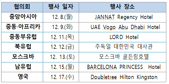 – 중앙아시아·중동·아프리카·중동부유럽·모스크바·북유럽·남유럽·영국 등 8개 협의회 –