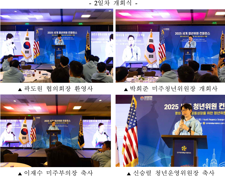 곽도원 오렌지‧샌디에고 협의회장은 “120년 전 실천적인 삶으로 대한민국 독립운동의 뿌리를 내린 도산 안창호 선생이 꿈꾸던 청년 여러분들이 민족의 미래를 이끌어 갈 희망의 주인공이며, 이번 컨퍼런스가 여러분에게 한반도의 평화를 위한 실질적인 행동 방향과 구체적 비전을 논의하는 담론의 장이 되길 바란다”며 청년위원들을 환영하였다.
