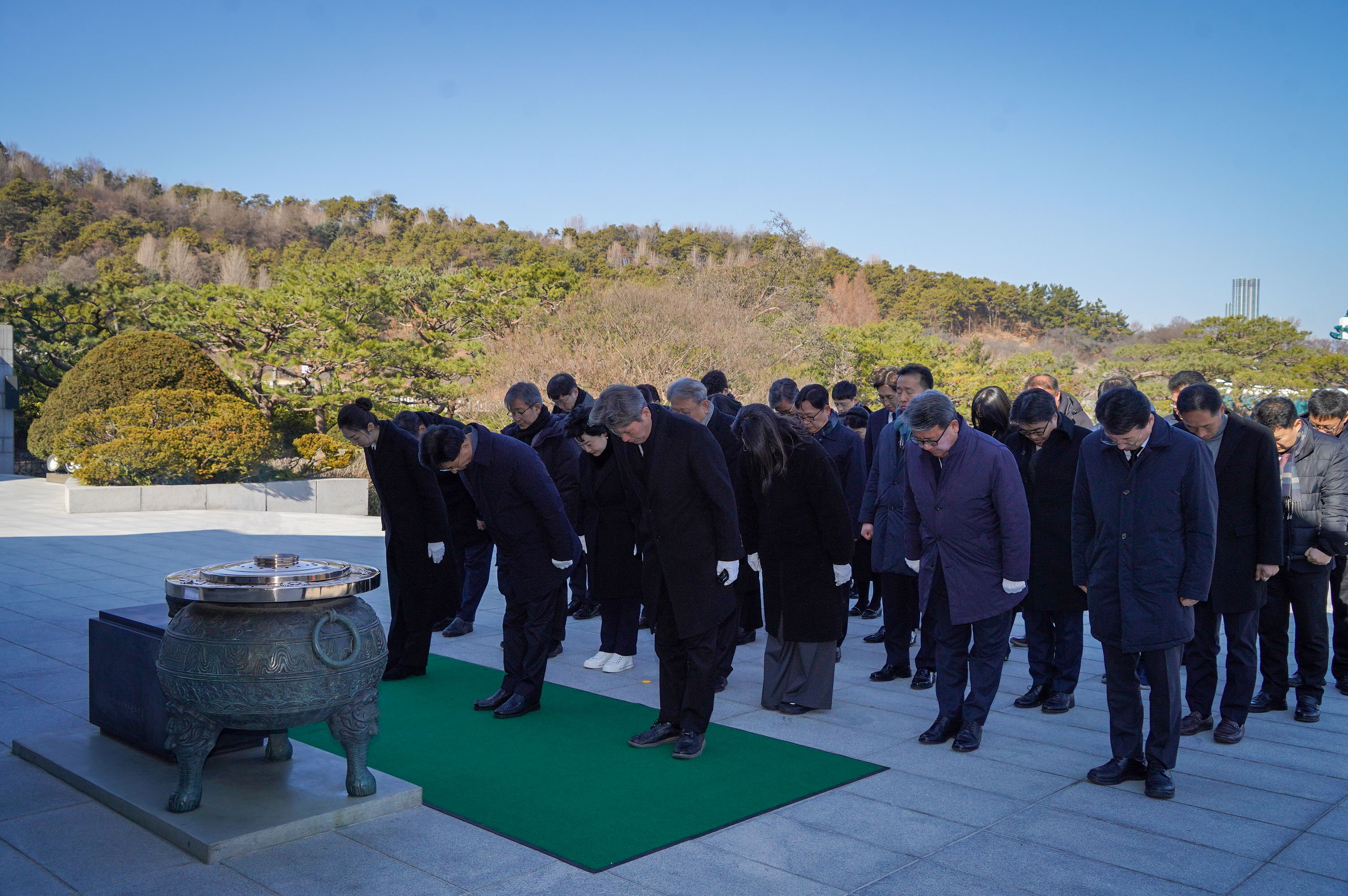 이해찬 수석부의장을 대신하여, 방용승 사무처장은 헌화하고 현충탑 분향을 했다.
