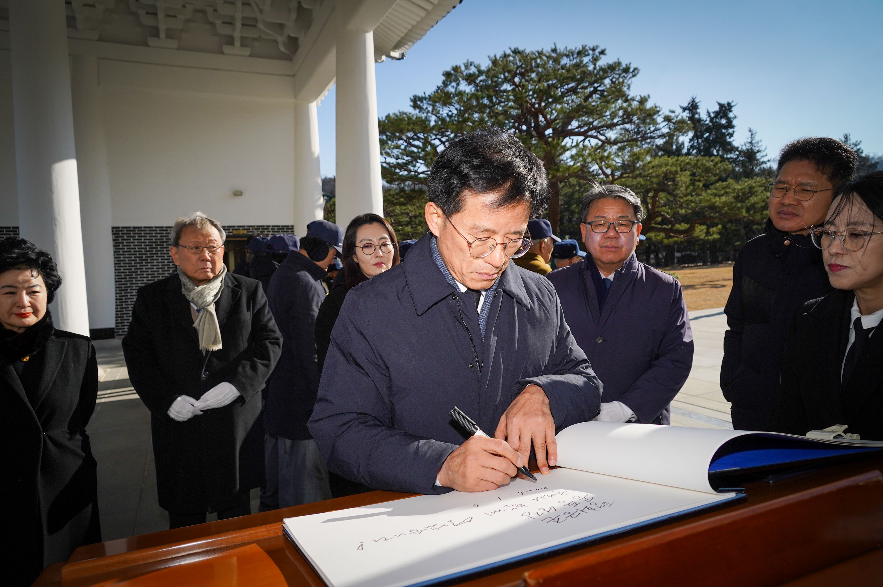 참배를 마치고 방용승 사무처장은 '평화공존, 공동성장 국민과 함께 열겠습니다.'라는 내용을 방명록에 남겼고, 사무처장과 간부위원들은 한반도 평화를 위한 헌신의 각오를 다졌다.